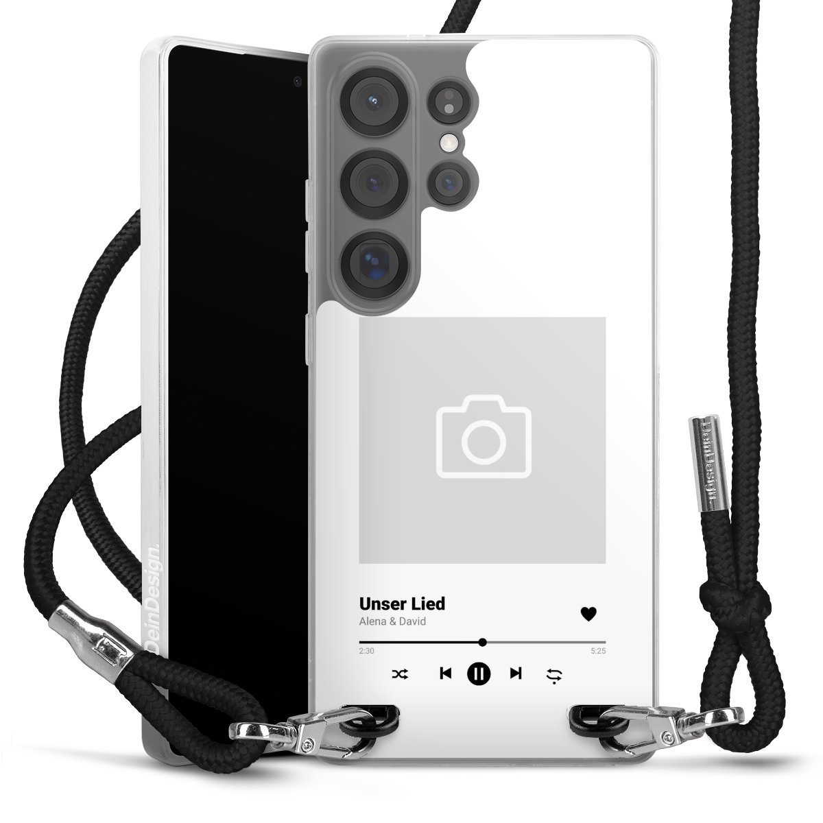 For our Carry Case we are using our advanced direct printing technology. The backside is fully printable, the frame is left unprinted. You can order the phone case without print, printed completely or also with a partial print. Choose one of our exclusive, pre-made shop designs or let your creativity shine and create your very own unique design with your pictures, overlays and text.
