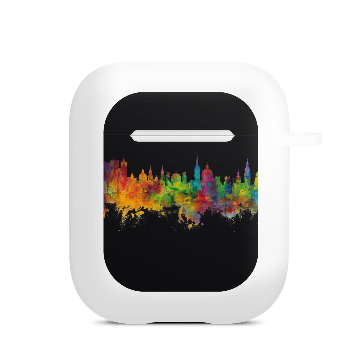 The AirPods Case is your handy and safe storage for your AirPods or AirPods Pro. Thanks to the attached snap hook you can easily add the AirPods Case to your phone necklace, keychain or bag. The wireless charging functionality can be still used at any time. The case is made from TPU, a very long lasting and shatterproof material. The case is available in black and white. The best part about the case: you can customize the frontside with your own designs or one of our pre-made prints!