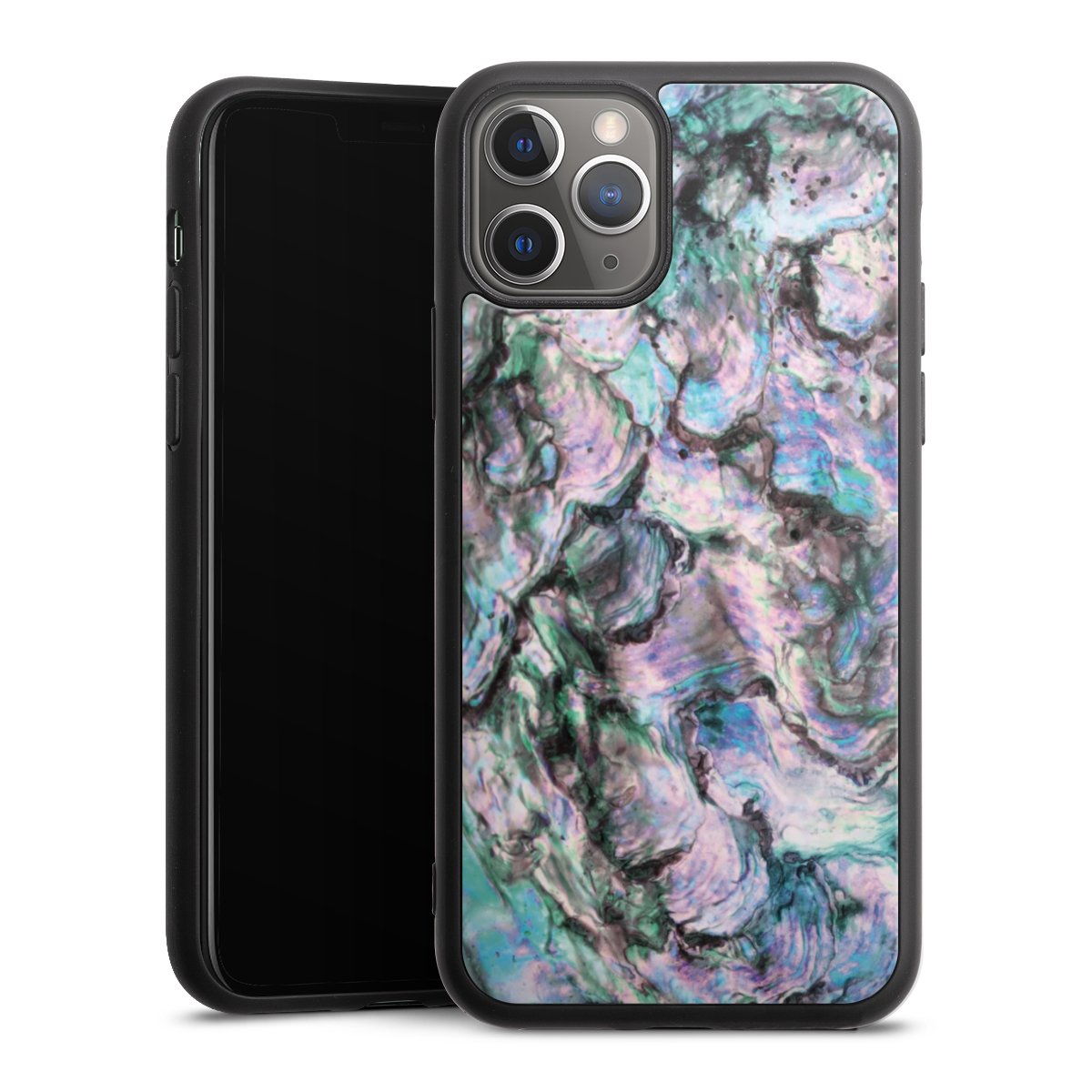 We print your design on the back of the glass inlay and then connect it firmly to the silicone case ,so that nothing sticks out and everything looks like it was cast from one piece. In addition, the sturdy glass element is protected from scratches by an additional coating and ensures a slight reflection on the shiny print image.