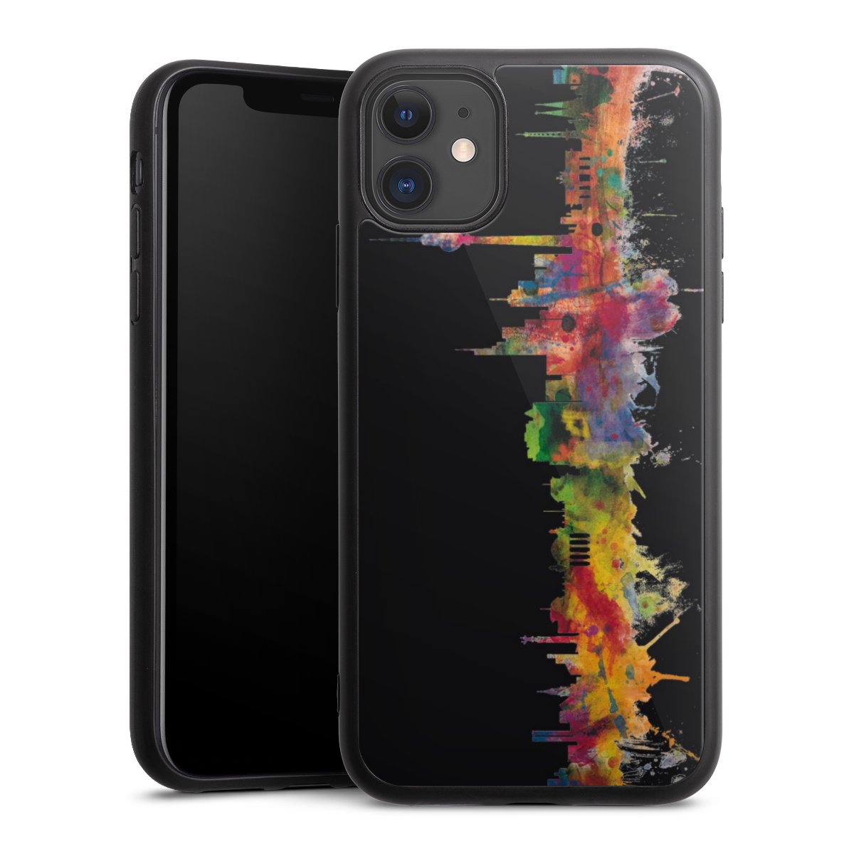 We print your design on the back of the glass inlay and then connect it firmly to the silicone case ,so that nothing sticks out and everything looks like it was cast from one piece. In addition, the sturdy glass element is protected from scratches by an additional coating and ensures a slight reflection on the shiny print image.