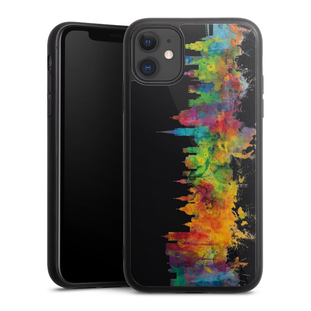 We print your design on the back of the glass inlay and then connect it firmly to the silicone case ,so that nothing sticks out and everything looks like it was cast from one piece. In addition, the sturdy glass element is protected from scratches by an additional coating and ensures a slight reflection on the shiny print image.