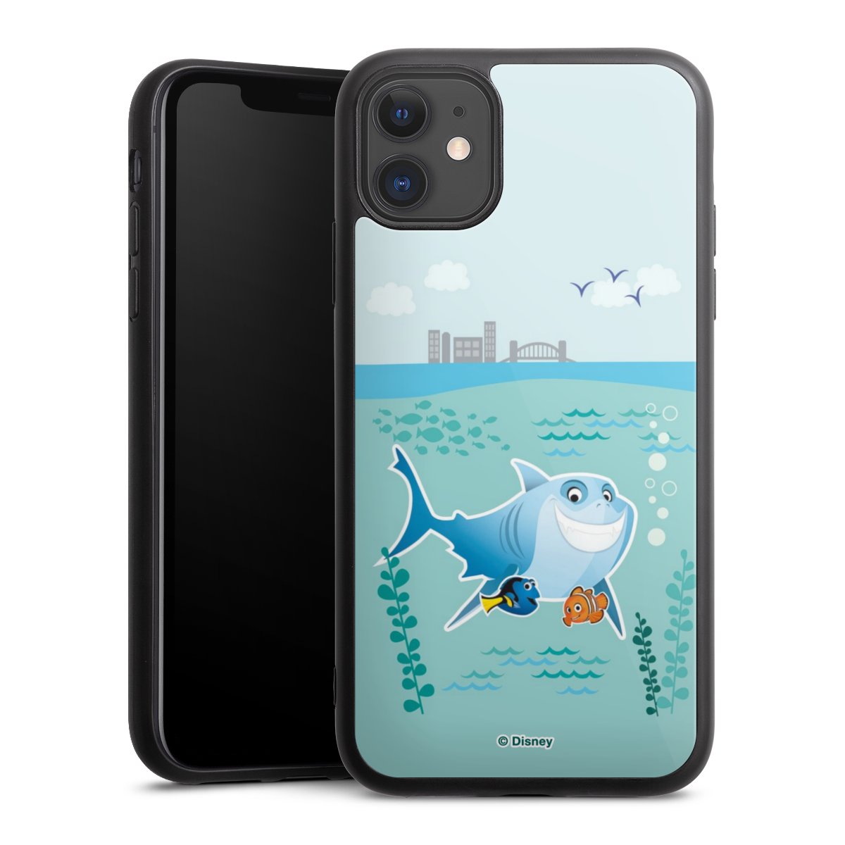 We print your design on the back of the glass inlay and then connect it firmly to the silicone case ,so that nothing sticks out and everything looks like it was cast from one piece. In addition, the sturdy glass element is protected from scratches by an additional coating and ensures a slight reflection on the shiny print image.