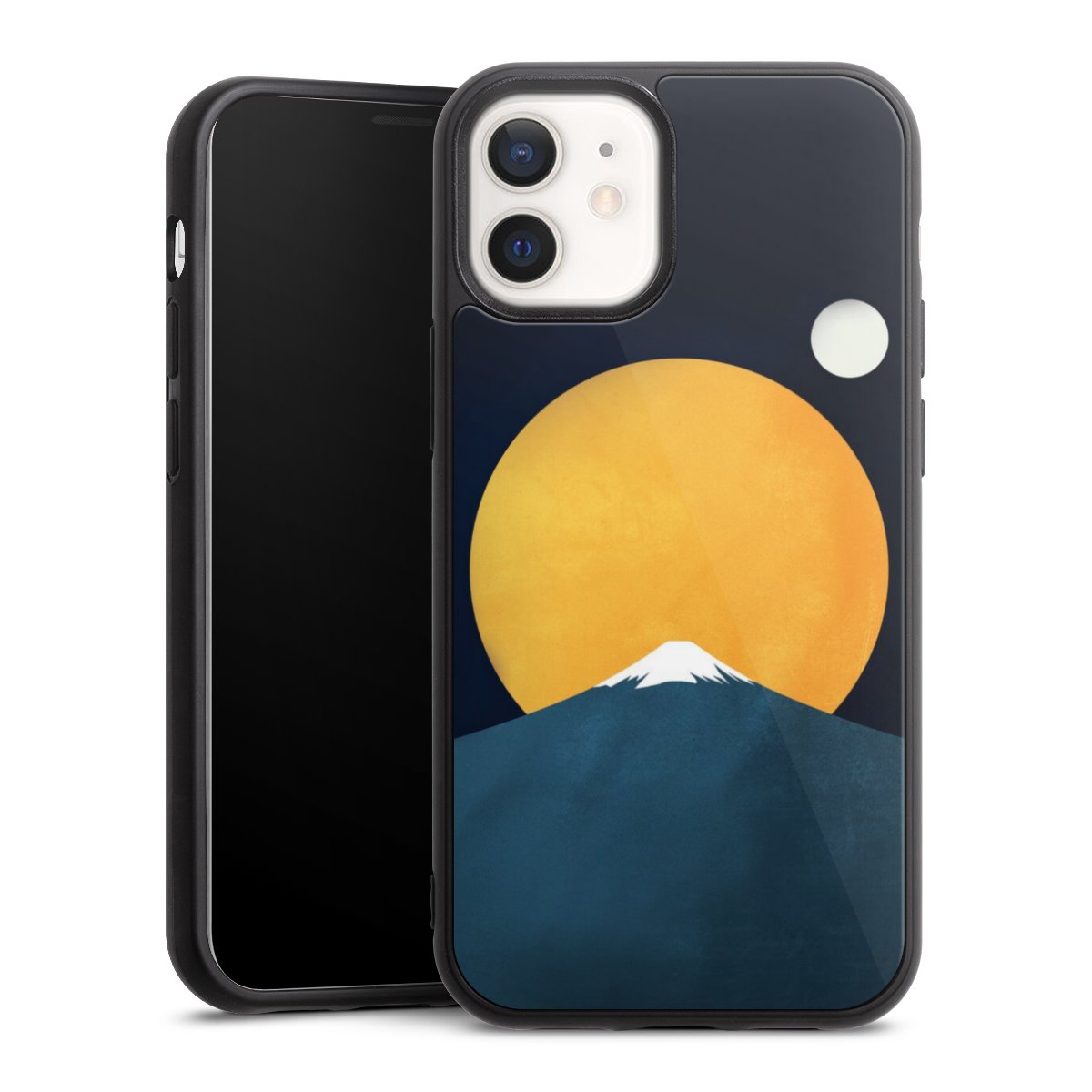 We print your design on the back of the glass inlay and then connect it firmly to the silicone case ,so that nothing sticks out and everything looks like it was cast from one piece. In addition, the sturdy glass element is protected from scratches by an additional coating and ensures a slight reflection on the shiny print image.