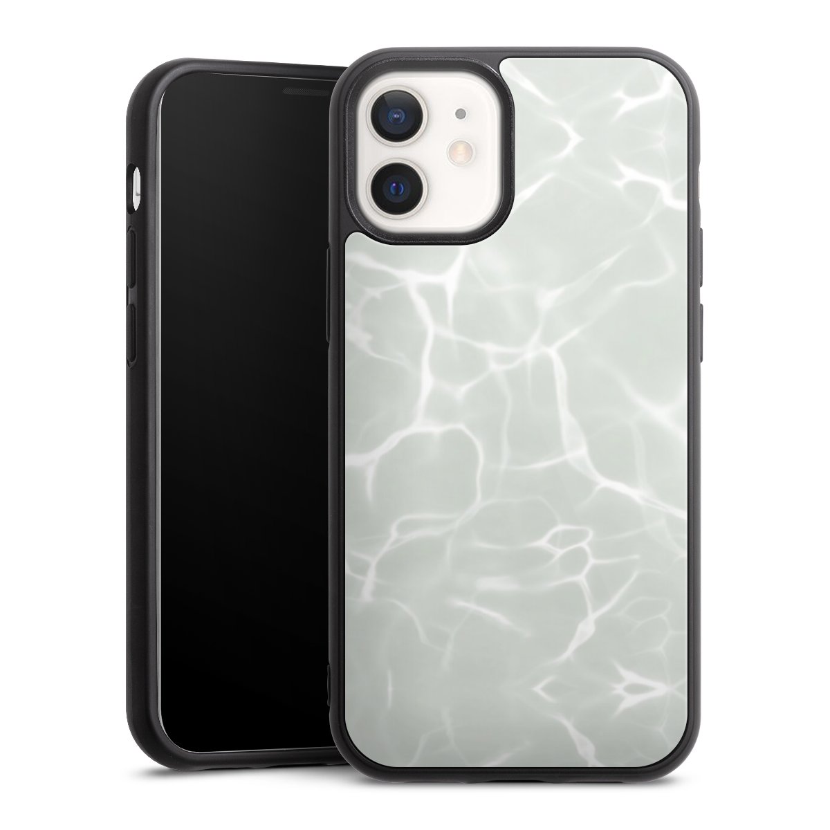 We print your design on the back of the glass inlay and then connect it firmly to the silicone case ,so that nothing sticks out and everything looks like it was cast from one piece. In addition, the sturdy glass element is protected from scratches by an additional coating and ensures a slight reflection on the shiny print image.