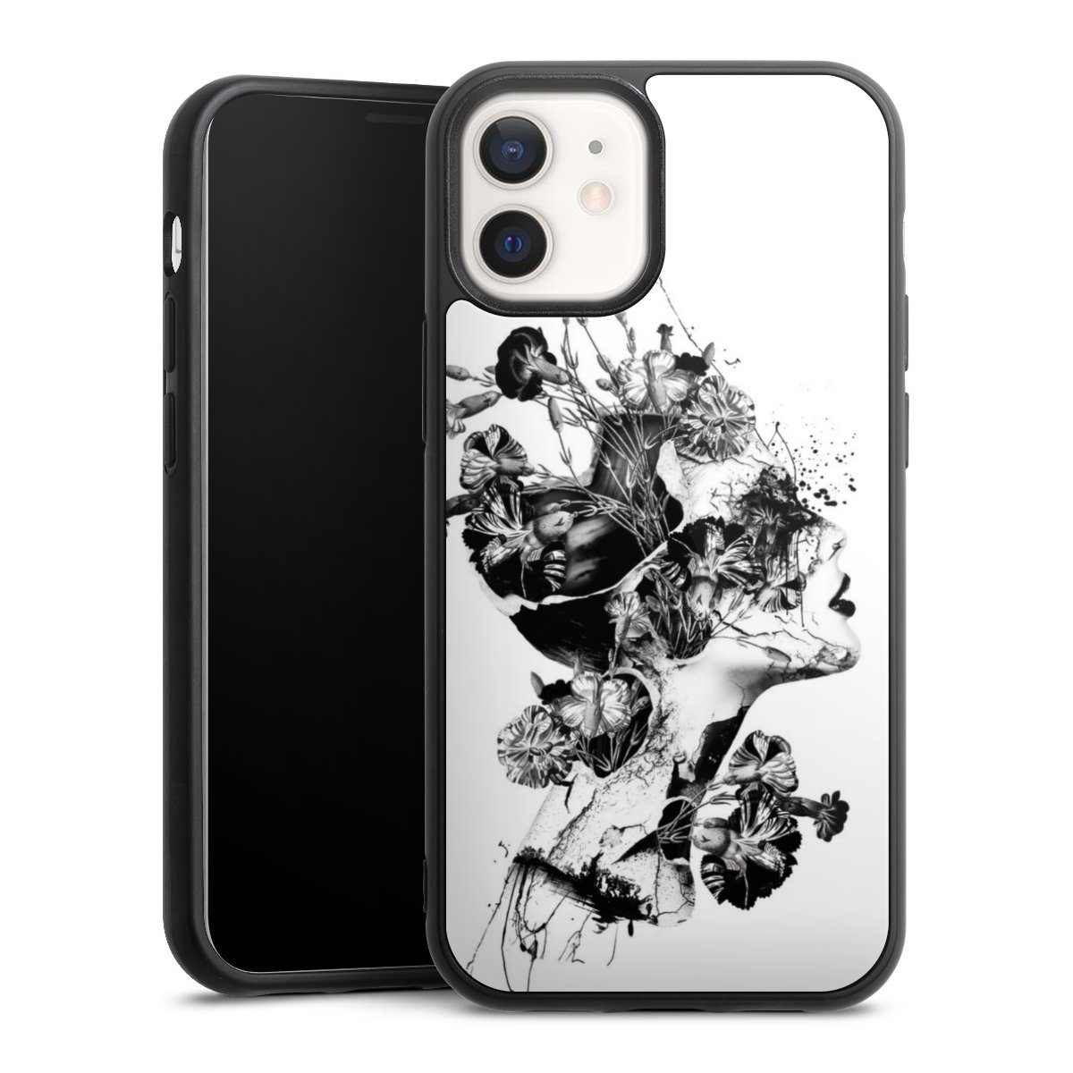 We print your design on the back of the glass inlay and then connect it firmly to the silicone case ,so that nothing sticks out and everything looks like it was cast from one piece. In addition, the sturdy glass element is protected from scratches by an additional coating and ensures a slight reflection on the shiny print image.