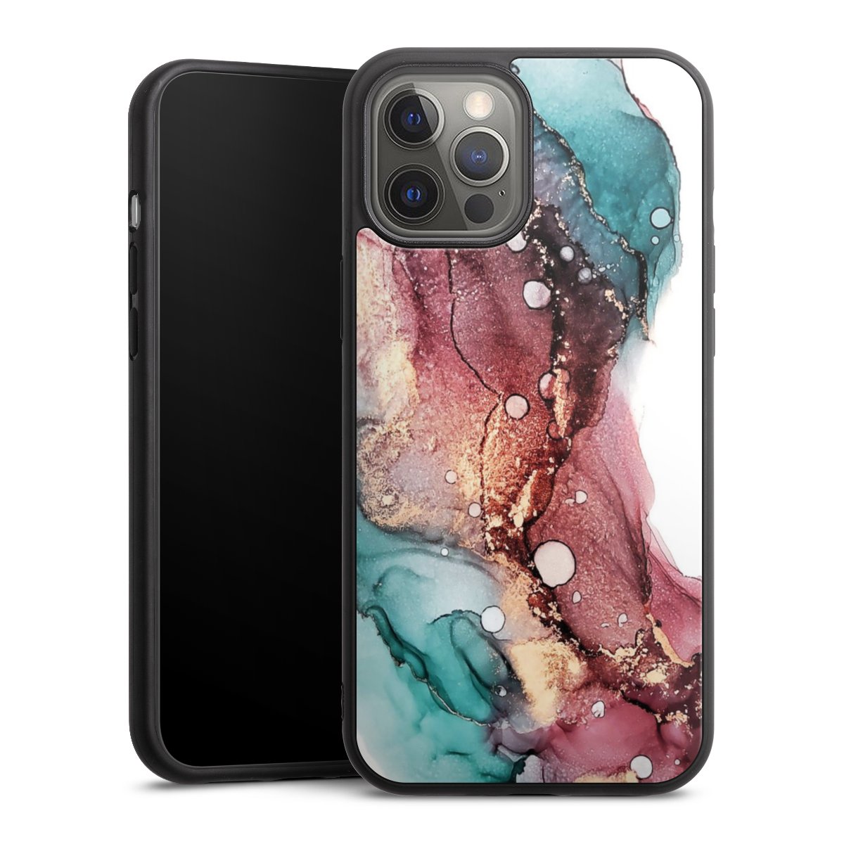 We print your design on the back of the glass inlay and then connect it firmly to the silicone case ,so that nothing sticks out and everything looks like it was cast from one piece. In addition, the sturdy glass element is protected from scratches by an additional coating and ensures a slight reflection on the shiny print image.