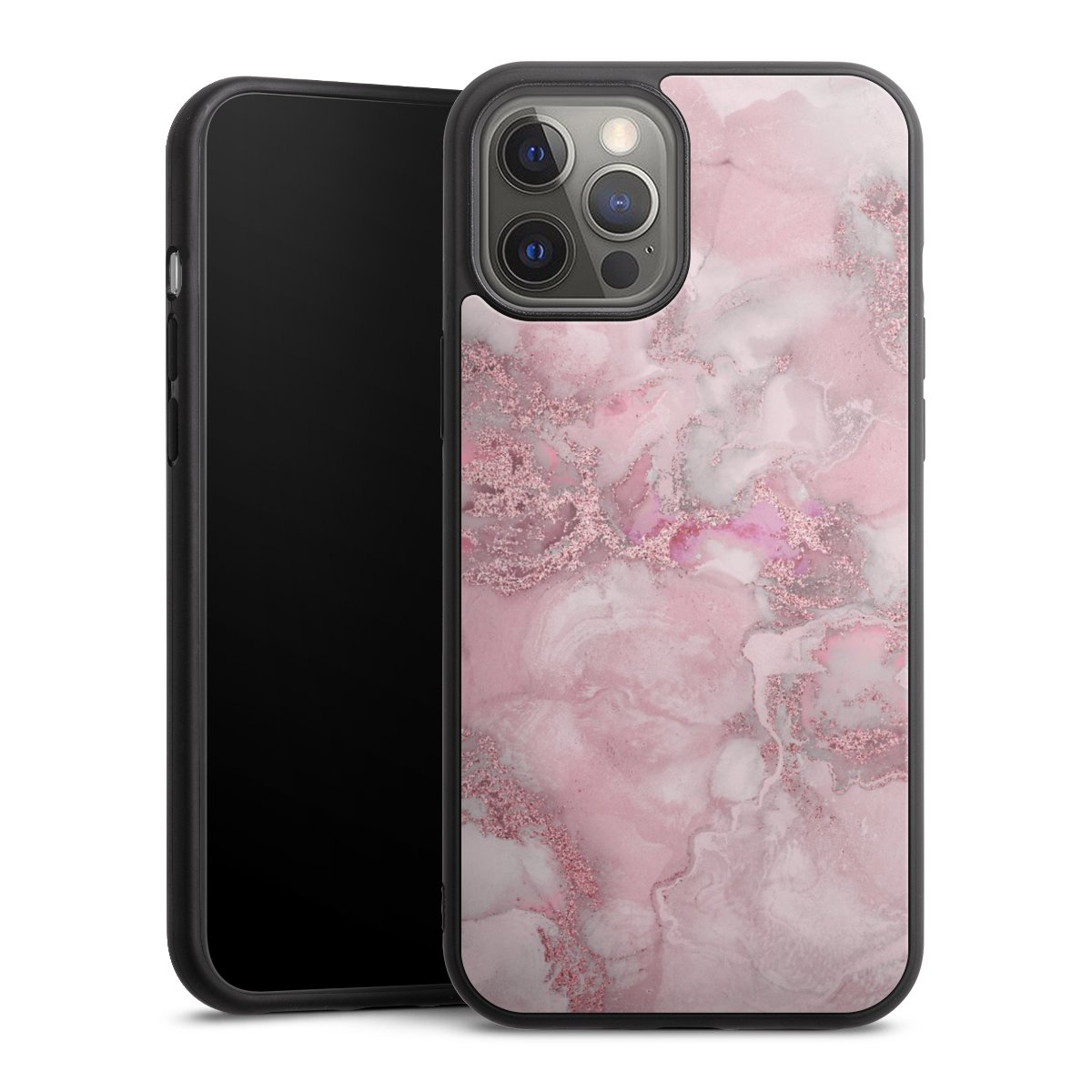 We print your design on the back of the glass inlay and then connect it firmly to the silicone case ,so that nothing sticks out and everything looks like it was cast from one piece. In addition, the sturdy glass element is protected from scratches by an additional coating and ensures a slight reflection on the shiny print image.