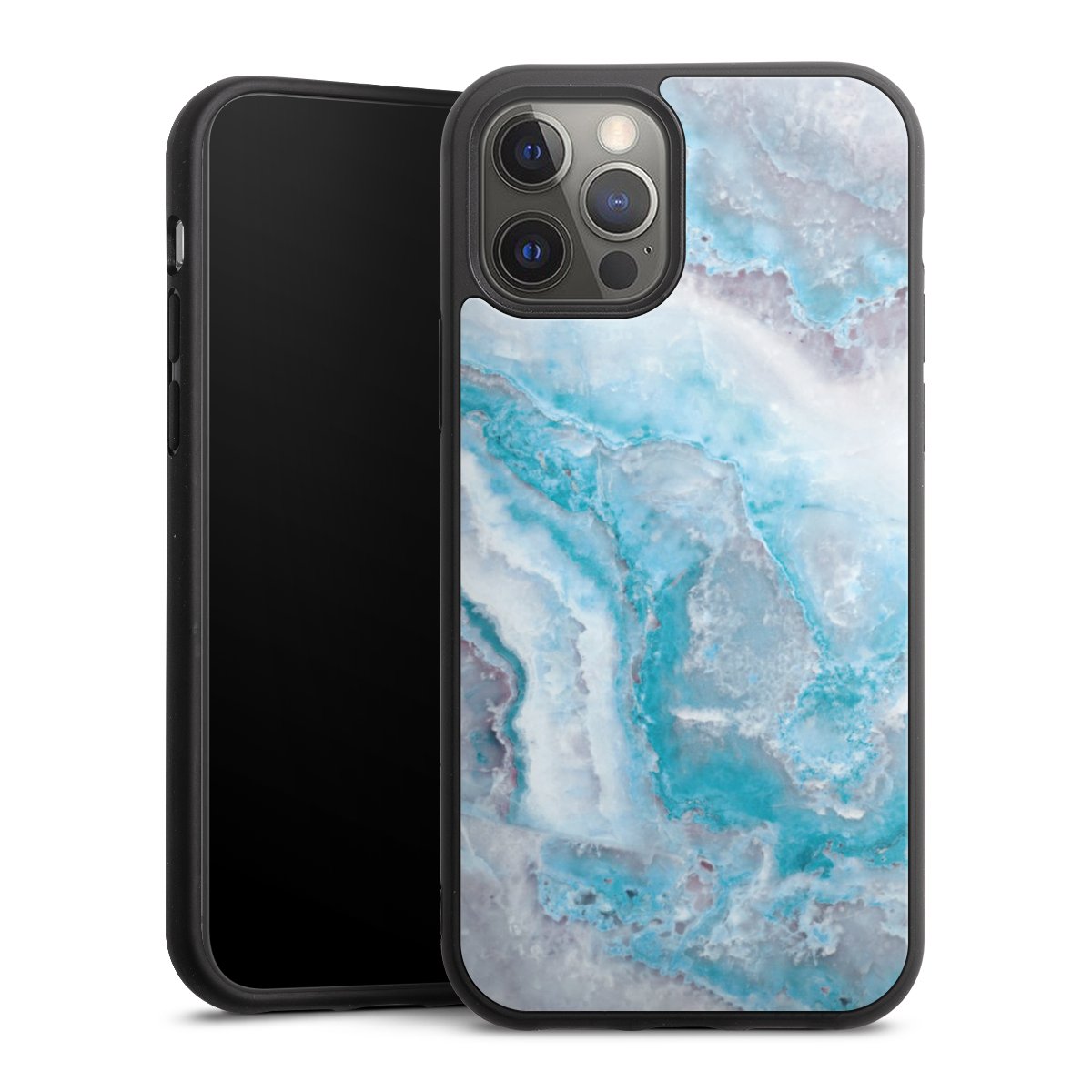 We print your design on the back of the glass inlay and then connect it firmly to the silicone case ,so that nothing sticks out and everything looks like it was cast from one piece. In addition, the sturdy glass element is protected from scratches by an additional coating and ensures a slight reflection on the shiny print image.