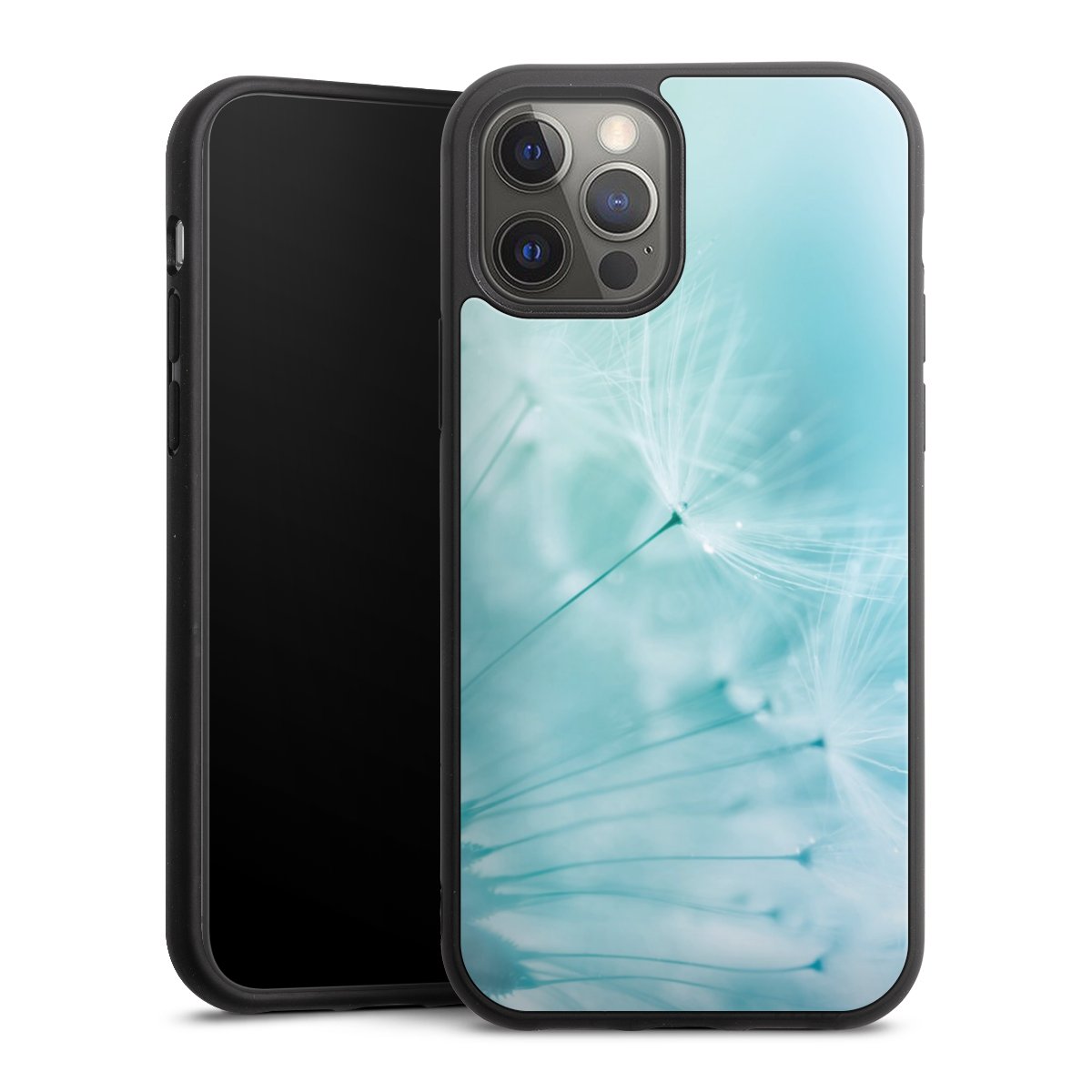 We print your design on the back of the glass inlay and then connect it firmly to the silicone case ,so that nothing sticks out and everything looks like it was cast from one piece. In addition, the sturdy glass element is protected from scratches by an additional coating and ensures a slight reflection on the shiny print image.