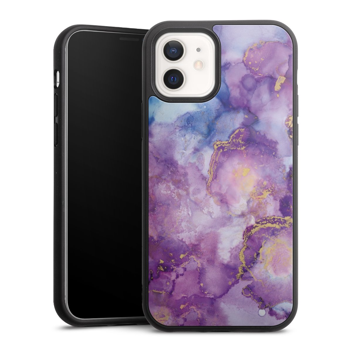 We print your design on the back of the glass inlay and then connect it firmly to the silicone case ,so that nothing sticks out and everything looks like it was cast from one piece. In addition, the sturdy glass element is protected from scratches by an additional coating and ensures a slight reflection on the shiny print image.