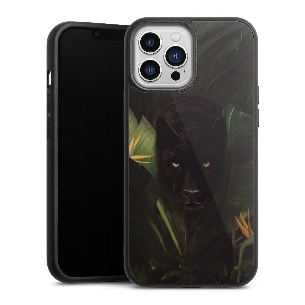 We print your design on the back of the glass inlay and then connect it firmly to the silicone case ,so that nothing sticks out and everything looks like it was cast from one piece. In addition, the sturdy glass element is protected from scratches by an additional coating and ensures a slight reflection on the shiny print image.
