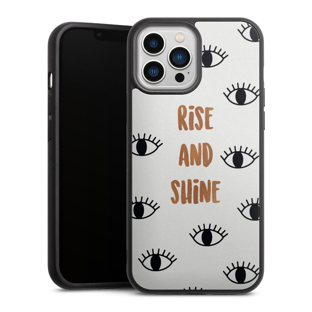 We print your design on the back of the glass inlay and then connect it firmly to the silicone case ,so that nothing sticks out and everything looks like it was cast from one piece. In addition, the sturdy glass element is protected from scratches by an additional coating and ensures a slight reflection on the shiny print image.