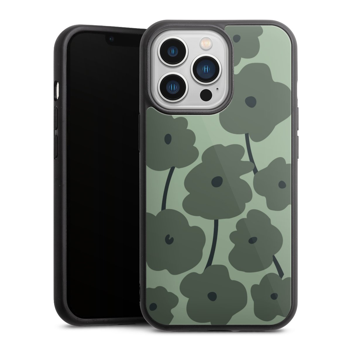 We print your design on the back of the glass inlay and then connect it firmly to the silicone case ,so that nothing sticks out and everything looks like it was cast from one piece. In addition, the sturdy glass element is protected from scratches by an additional coating and ensures a slight reflection on the shiny print image.