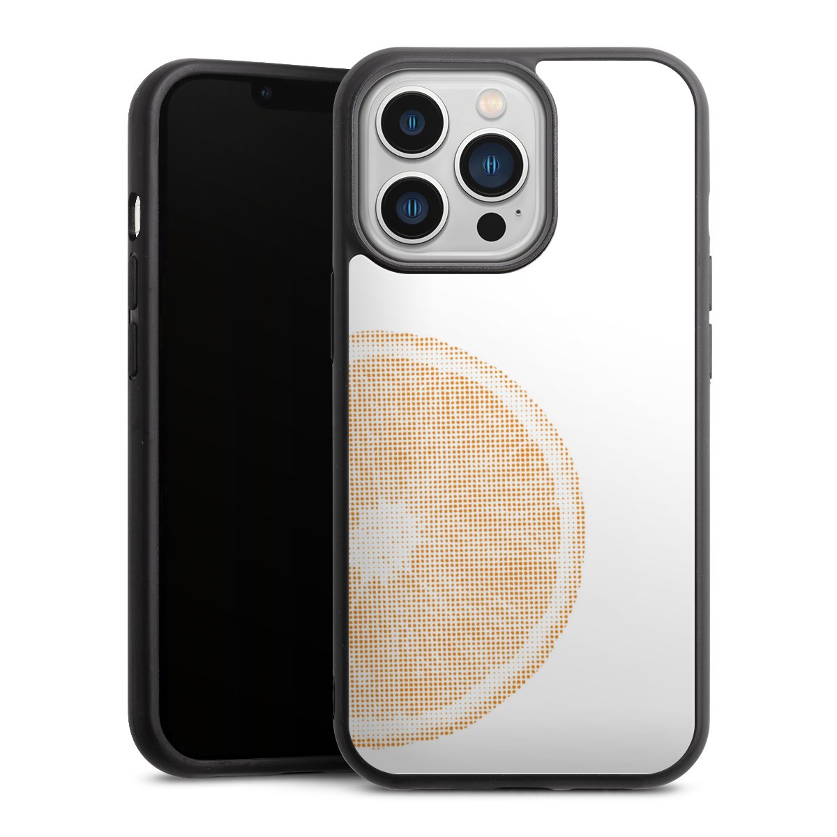 We print your design on the back of the glass inlay and then connect it firmly to the silicone case ,so that nothing sticks out and everything looks like it was cast from one piece. In addition, the sturdy glass element is protected from scratches by an additional coating and ensures a slight reflection on the shiny print image.