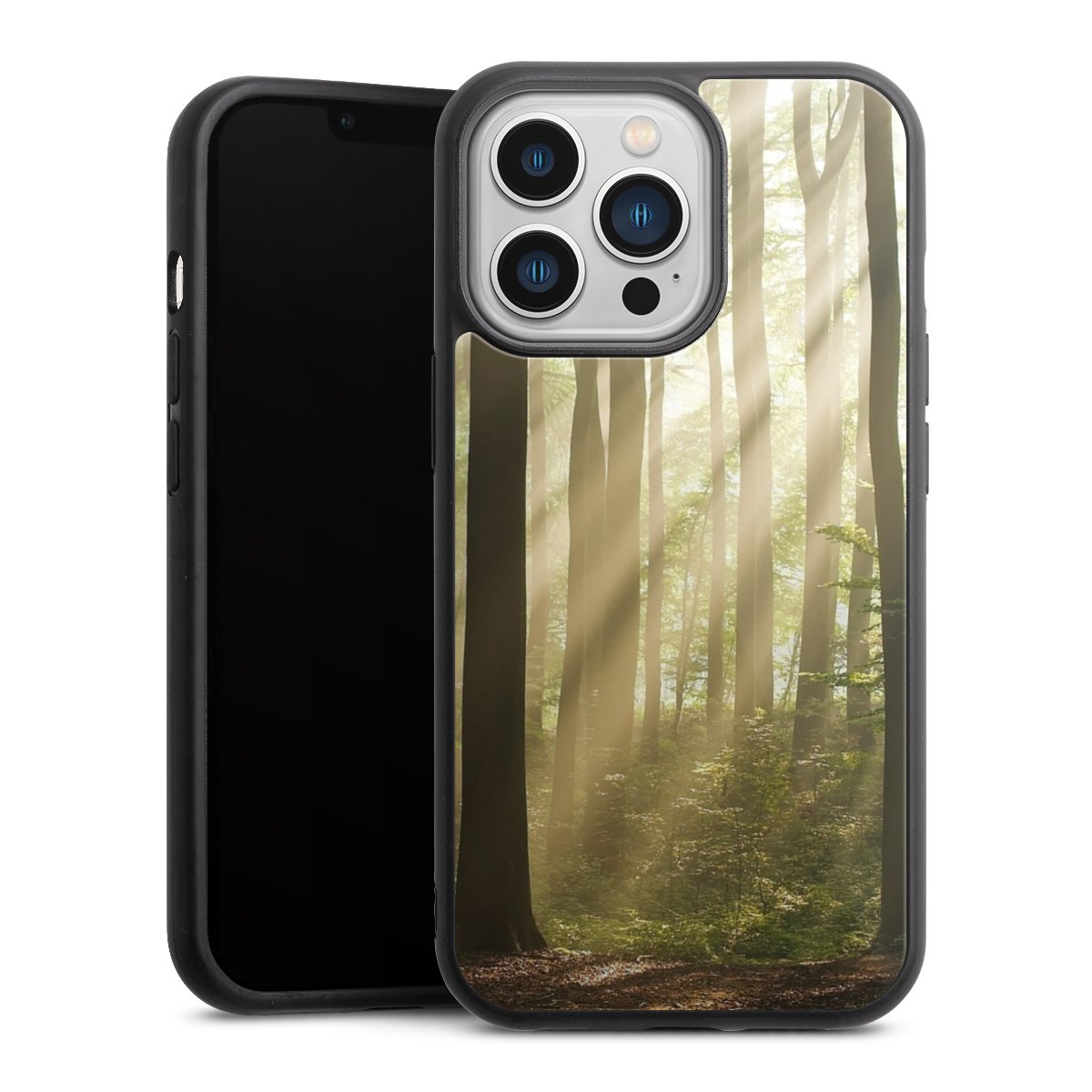 We print your design on the back of the glass inlay and then connect it firmly to the silicone case ,so that nothing sticks out and everything looks like it was cast from one piece. In addition, the sturdy glass element is protected from scratches by an additional coating and ensures a slight reflection on the shiny print image.