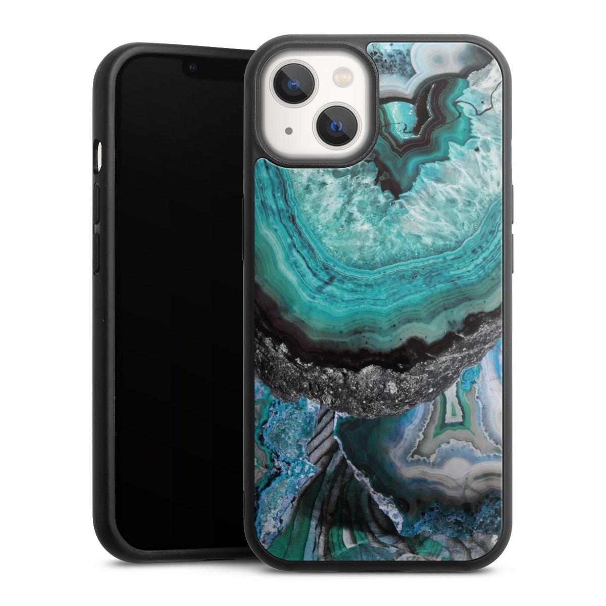We print your design on the back of the glass inlay and then connect it firmly to the silicone case ,so that nothing sticks out and everything looks like it was cast from one piece. In addition, the sturdy glass element is protected from scratches by an additional coating and ensures a slight reflection on the shiny print image.