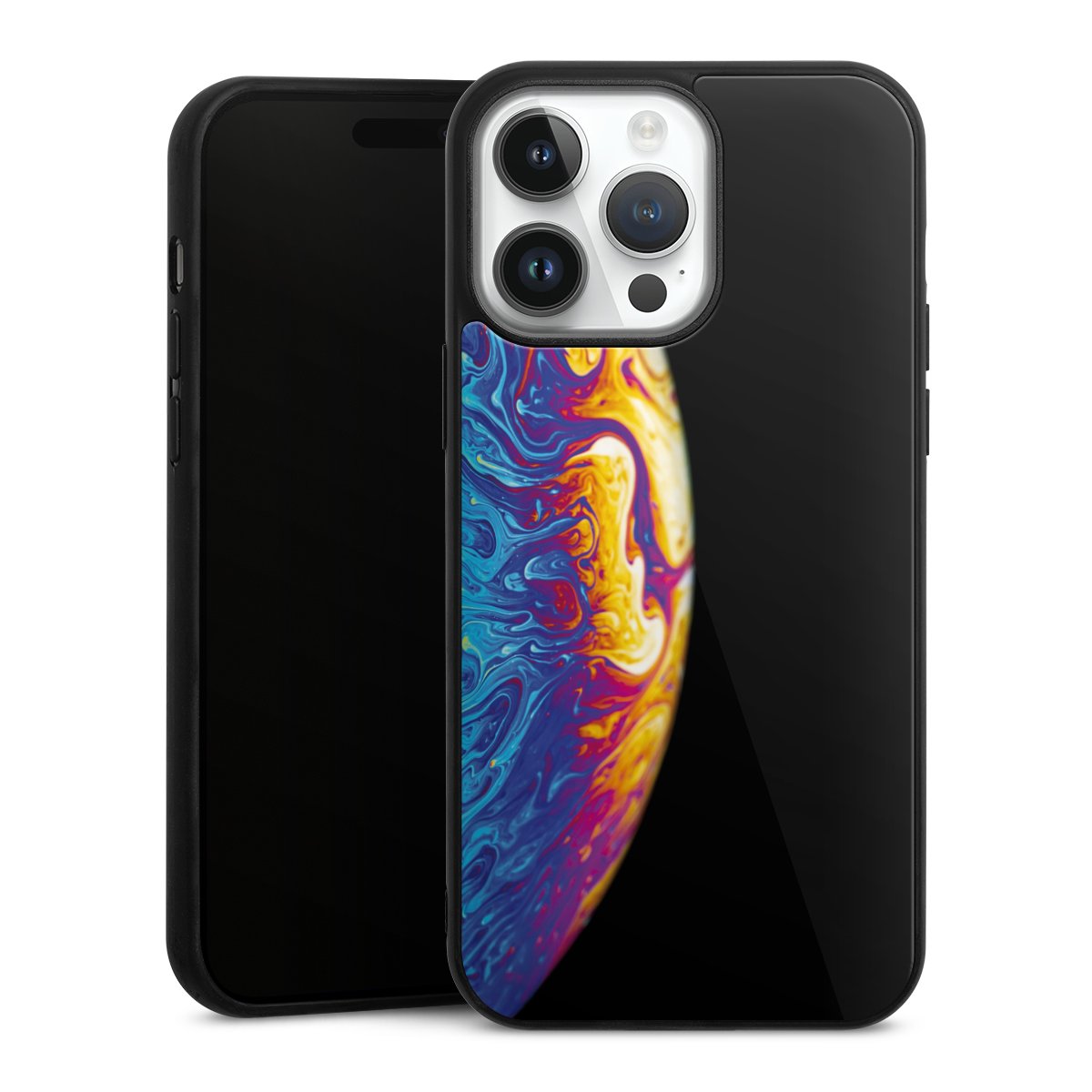 We print your design on the back of the glass inlay and then connect it firmly to the silicone case ,so that nothing sticks out and everything looks like it was cast from one piece. In addition, the sturdy glass element is protected from scratches by an additional coating and ensures a slight reflection on the shiny print image.