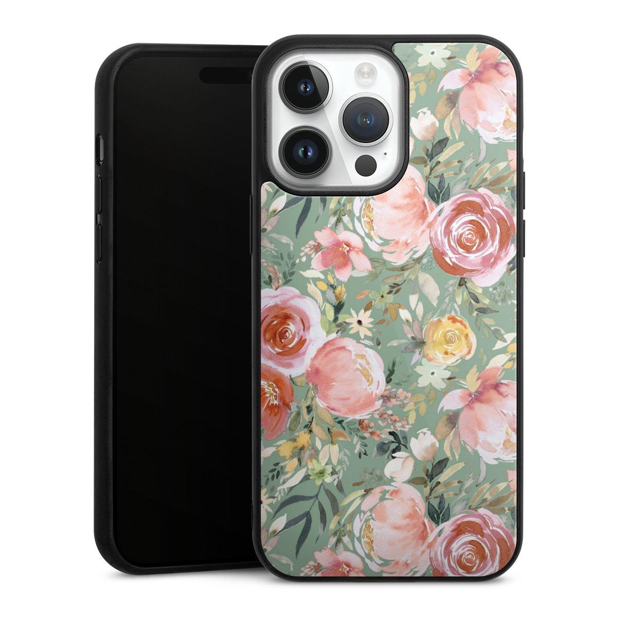 We print your design on the back of the glass inlay and then connect it firmly to the silicone case ,so that nothing sticks out and everything looks like it was cast from one piece. In addition, the sturdy glass element is protected from scratches by an additional coating and ensures a slight reflection on the shiny print image.
