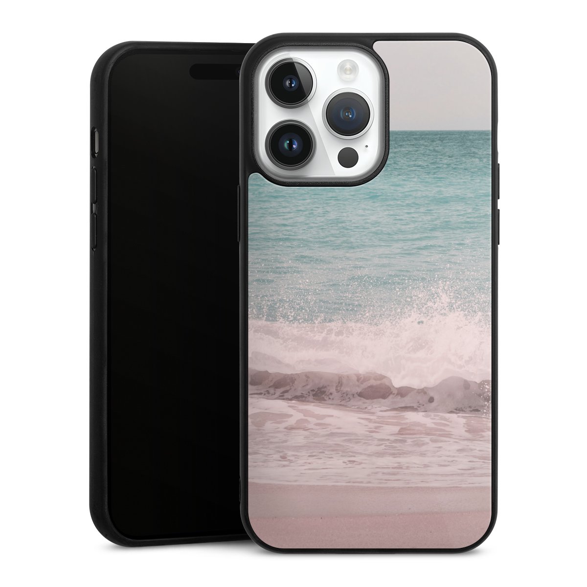 We print your design on the back of the glass inlay and then connect it firmly to the silicone case ,so that nothing sticks out and everything looks like it was cast from one piece. In addition, the sturdy glass element is protected from scratches by an additional coating and ensures a slight reflection on the shiny print image.