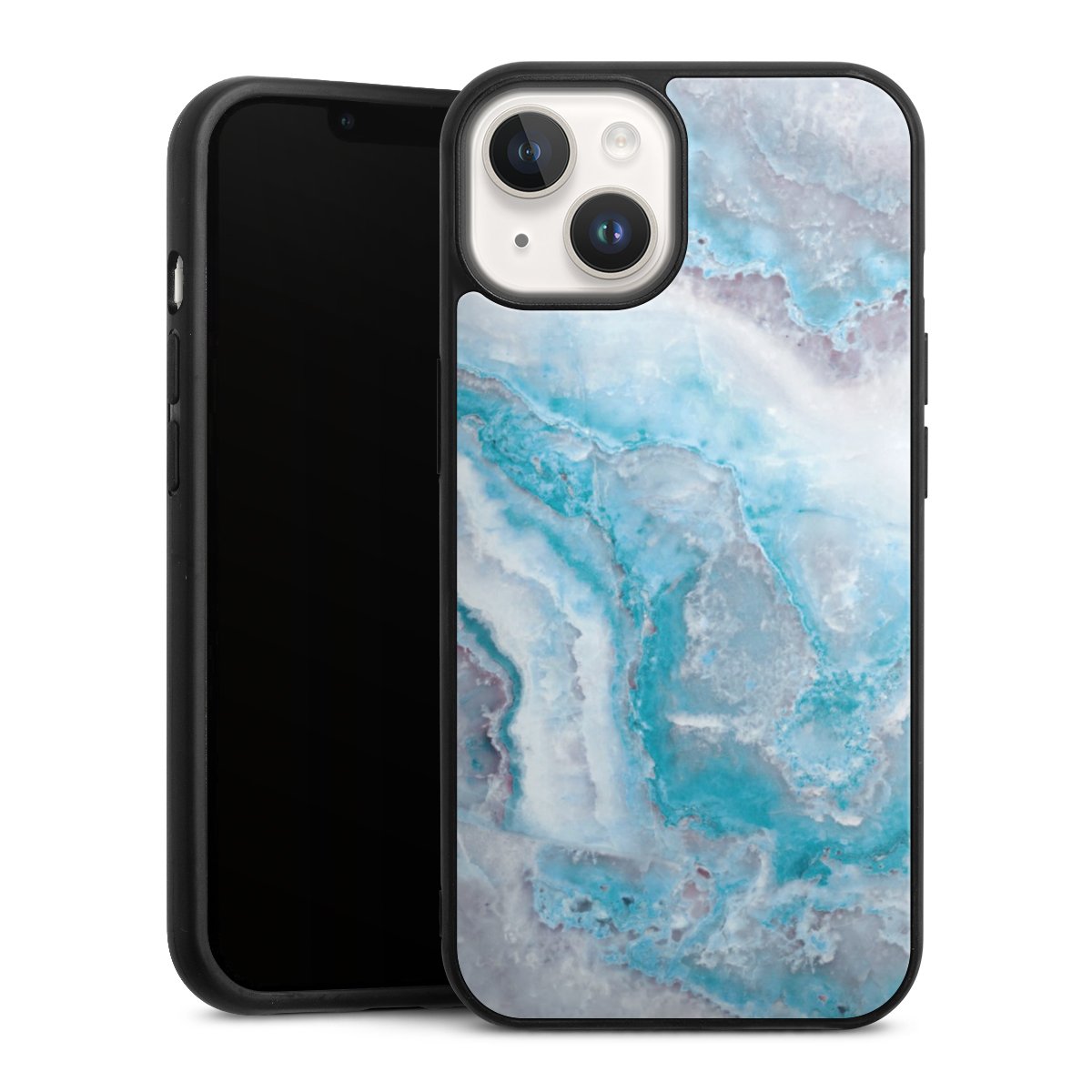 We print your design on the back of the glass inlay and then connect it firmly to the silicone case ,so that nothing sticks out and everything looks like it was cast from one piece. In addition, the sturdy glass element is protected from scratches by an additional coating and ensures a slight reflection on the shiny print image.