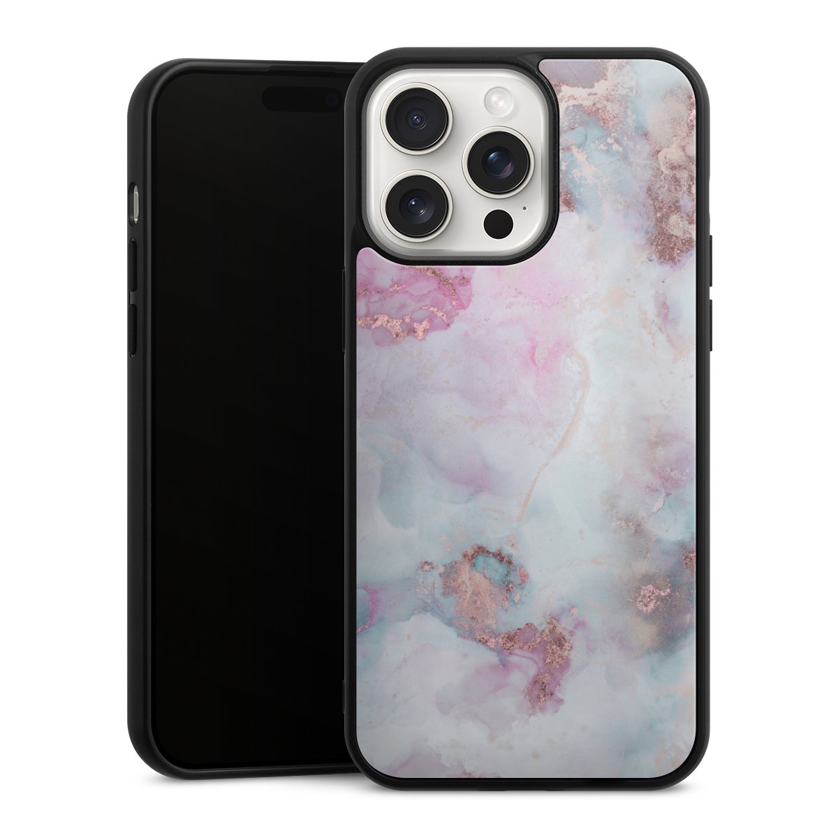 We print your design on the back of the glass inlay and then connect it firmly to the silicone case ,so that nothing sticks out and everything looks like it was cast from one piece. In addition, the sturdy glass element is protected from scratches by an additional coating and ensures a slight reflection on the shiny print image.