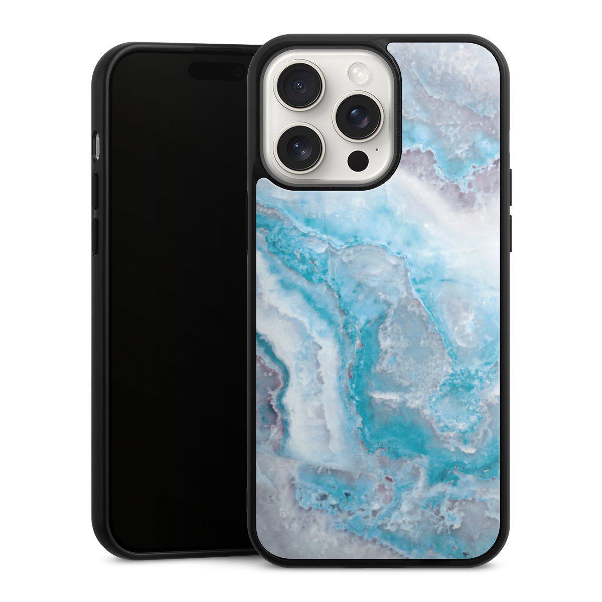 We print your design on the back of the glass inlay and then connect it firmly to the silicone case ,so that nothing sticks out and everything looks like it was cast from one piece. In addition, the sturdy glass element is protected from scratches by an additional coating and ensures a slight reflection on the shiny print image.