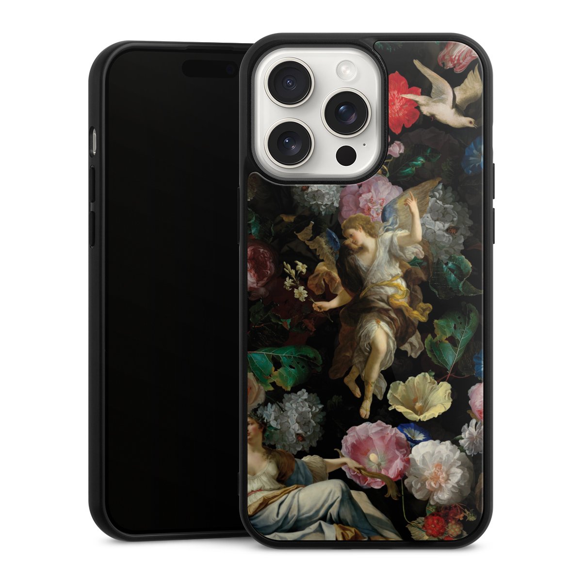 We print your design on the back of the glass inlay and then connect it firmly to the silicone case ,so that nothing sticks out and everything looks like it was cast from one piece. In addition, the sturdy glass element is protected from scratches by an additional coating and ensures a slight reflection on the shiny print image.
