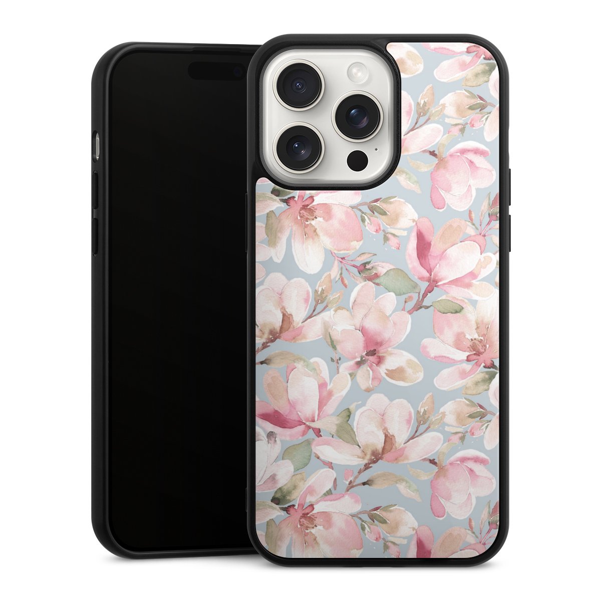 We print your design on the back of the glass inlay and then connect it firmly to the silicone case ,so that nothing sticks out and everything looks like it was cast from one piece. In addition, the sturdy glass element is protected from scratches by an additional coating and ensures a slight reflection on the shiny print image.