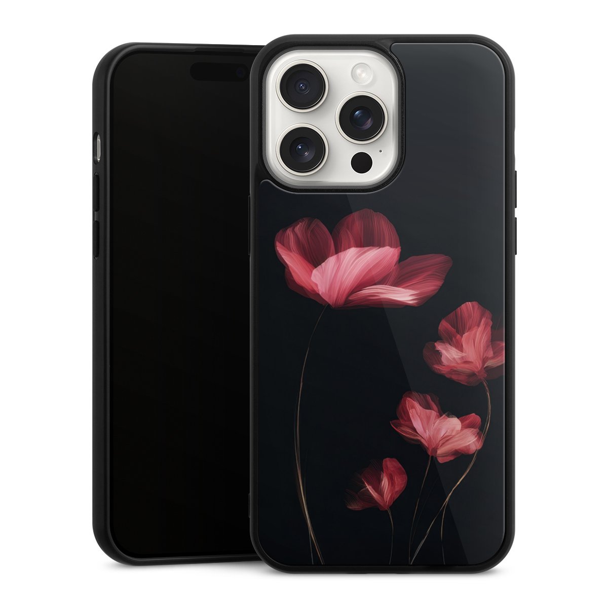 We print your design on the back of the glass inlay and then connect it firmly to the silicone case ,so that nothing sticks out and everything looks like it was cast from one piece. In addition, the sturdy glass element is protected from scratches by an additional coating and ensures a slight reflection on the shiny print image.