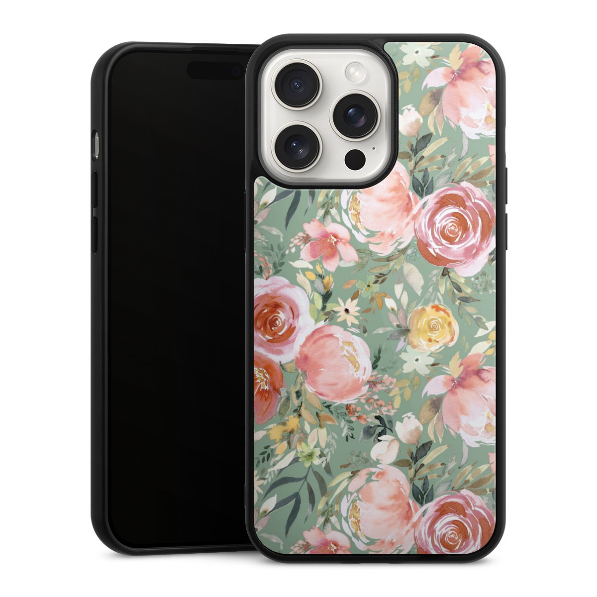 We print your design on the back of the glass inlay and then connect it firmly to the silicone case ,so that nothing sticks out and everything looks like it was cast from one piece. In addition, the sturdy glass element is protected from scratches by an additional coating and ensures a slight reflection on the shiny print image.