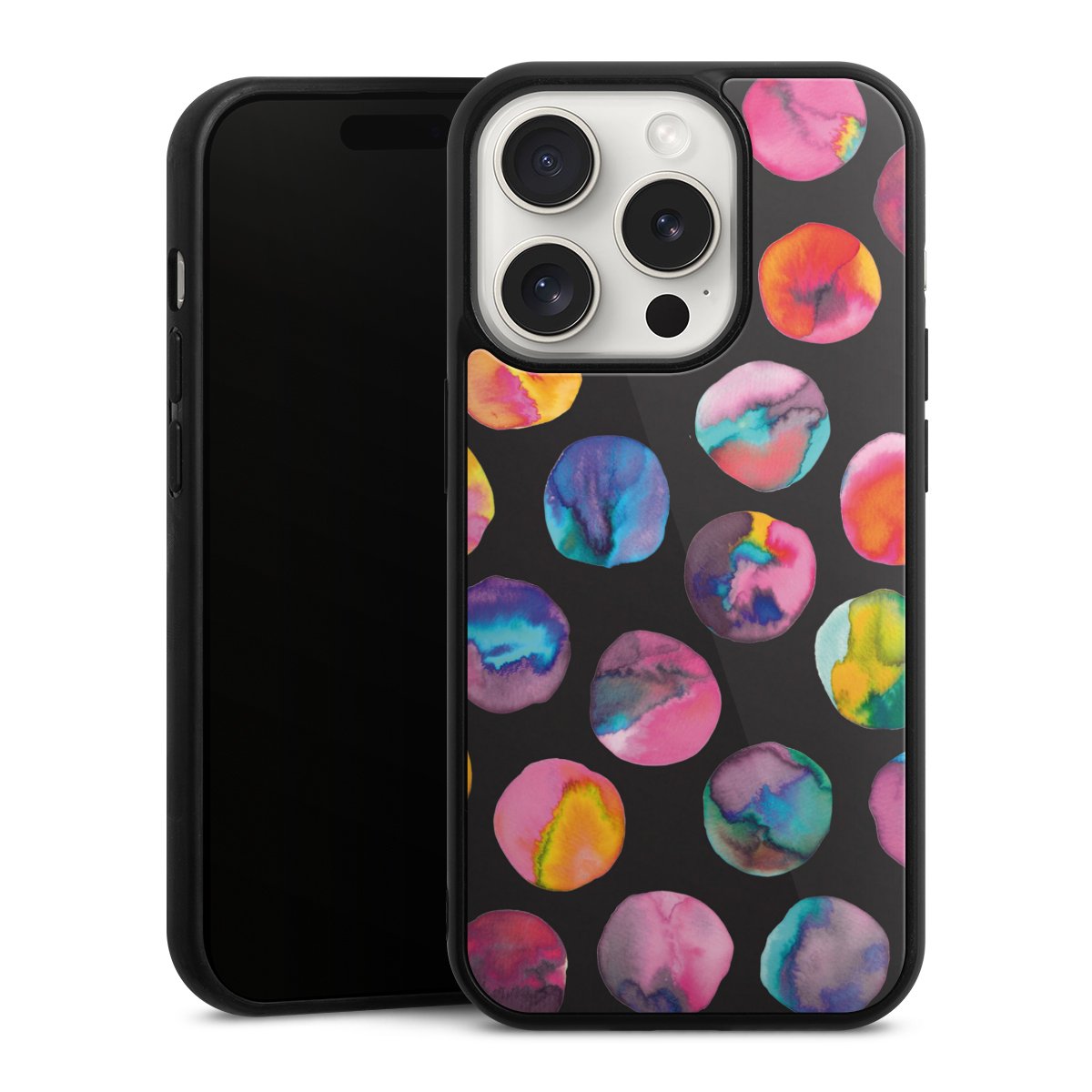Colorful Ink Marbles Dots Black