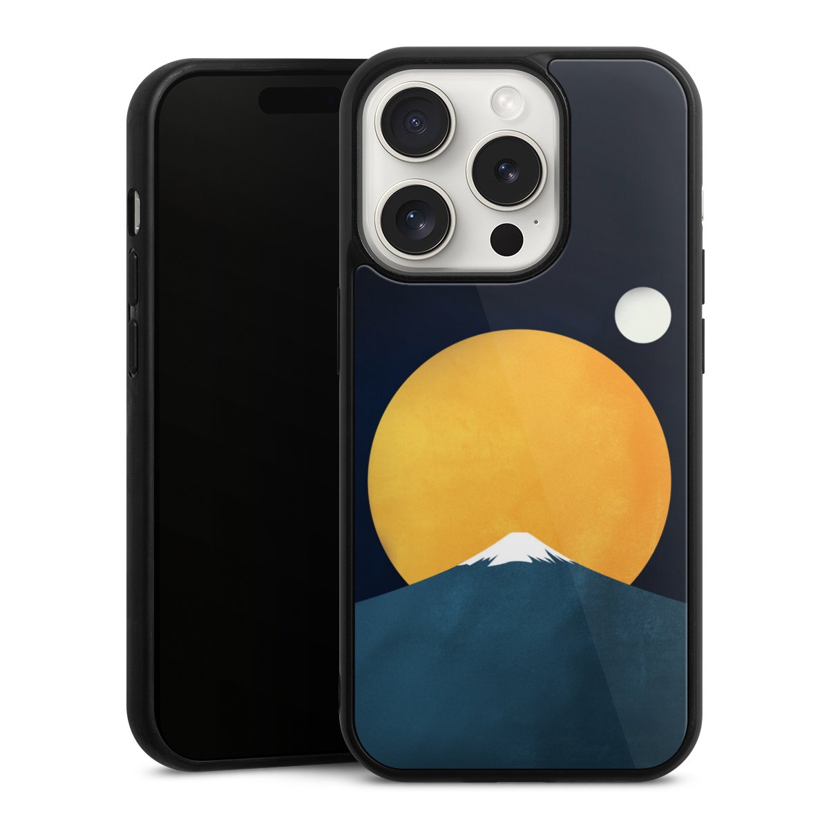 We print your design on the back of the glass inlay and then connect it firmly to the silicone case ,so that nothing sticks out and everything looks like it was cast from one piece. In addition, the sturdy glass element is protected from scratches by an additional coating and ensures a slight reflection on the shiny print image.