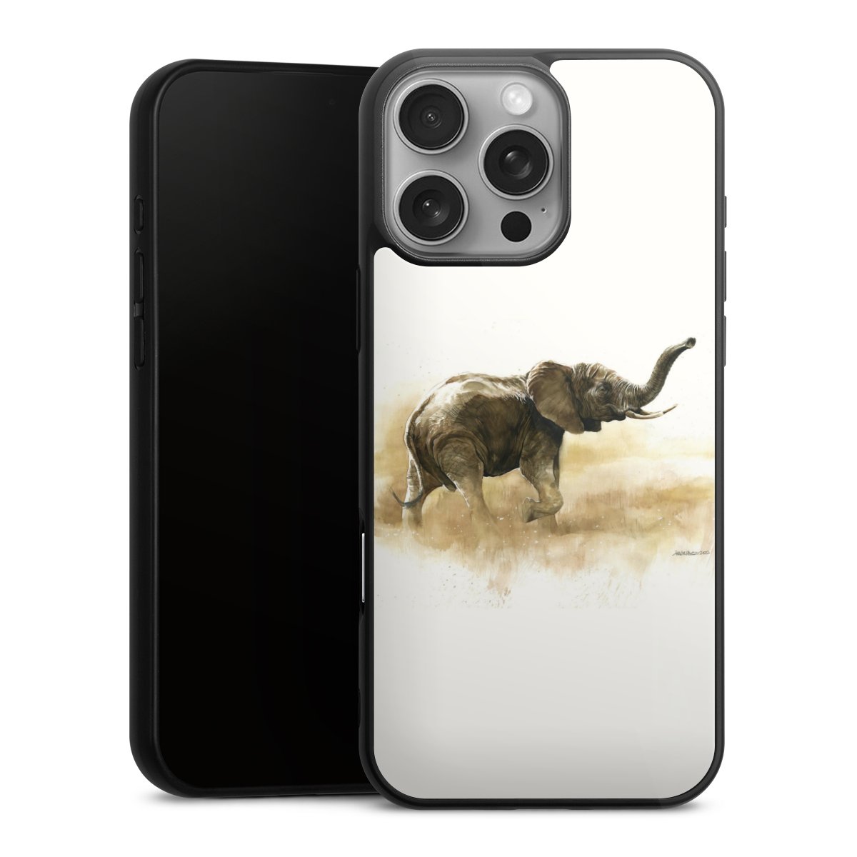 We print your design on the back of the glass inlay and then connect it firmly to the silicone case ,so that nothing sticks out and everything looks like it was cast from one piece. In addition, the sturdy glass element is protected from scratches by an additional coating and ensures a slight reflection on the shiny print image.