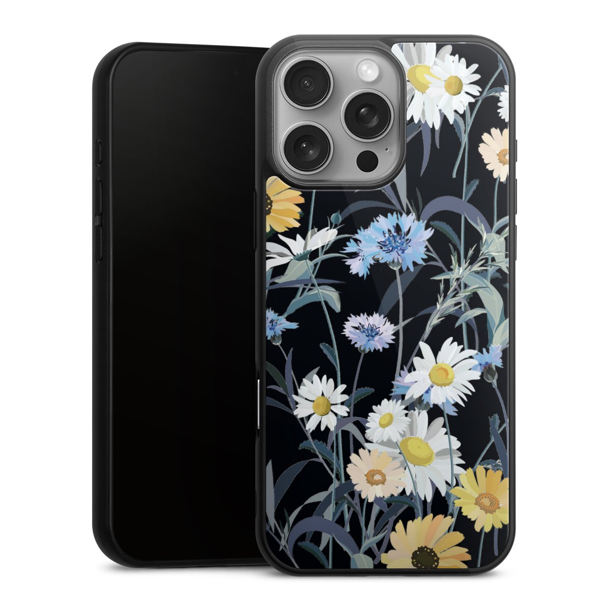 We print your design on the back of the glass inlay and then connect it firmly to the silicone case ,so that nothing sticks out and everything looks like it was cast from one piece. In addition, the sturdy glass element is protected from scratches by an additional coating and ensures a slight reflection on the shiny print image.