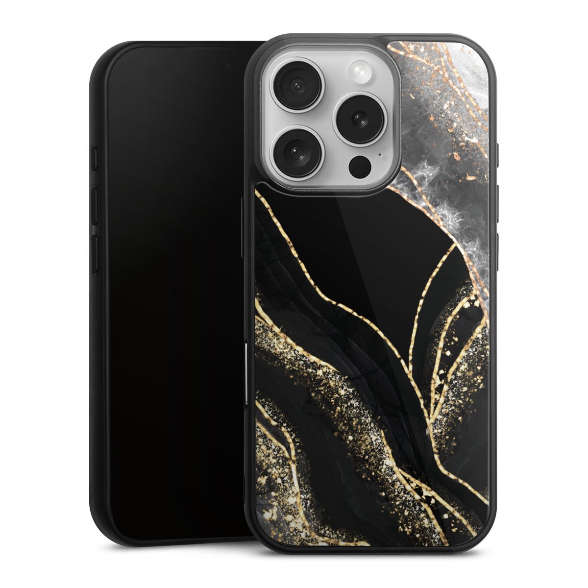 We print your design on the back of the glass inlay and then connect it firmly to the silicone case ,so that nothing sticks out and everything looks like it was cast from one piece. In addition, the sturdy glass element is protected from scratches by an additional coating and ensures a slight reflection on the shiny print image.