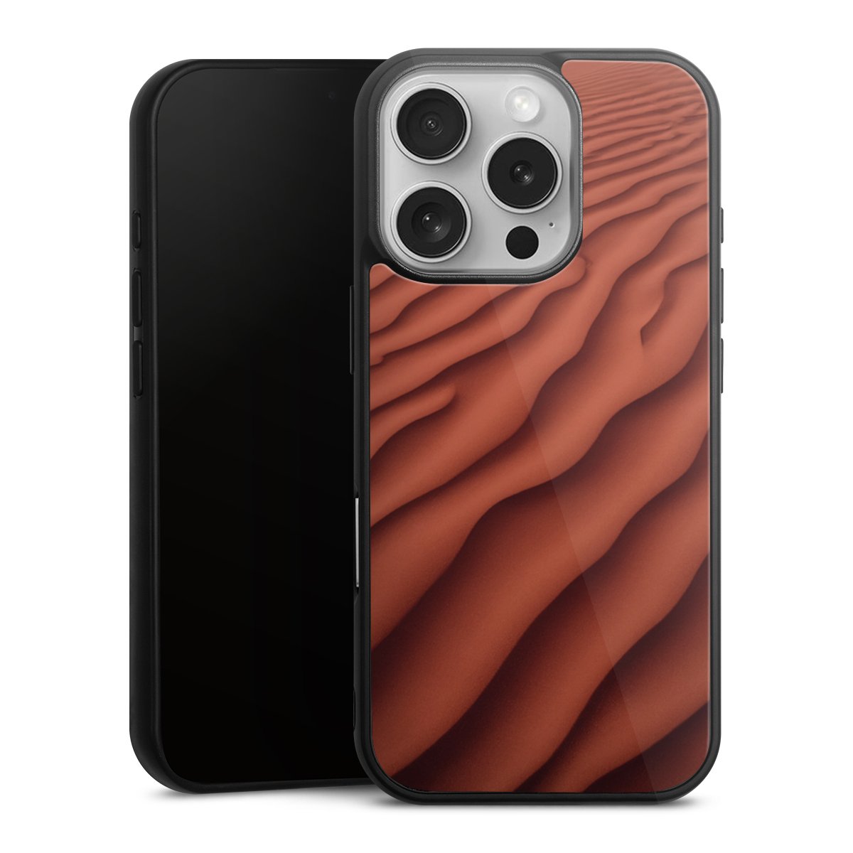 We print your design on the back of the glass inlay and then connect it firmly to the silicone case ,so that nothing sticks out and everything looks like it was cast from one piece. In addition, the sturdy glass element is protected from scratches by an additional coating and ensures a slight reflection on the shiny print image.