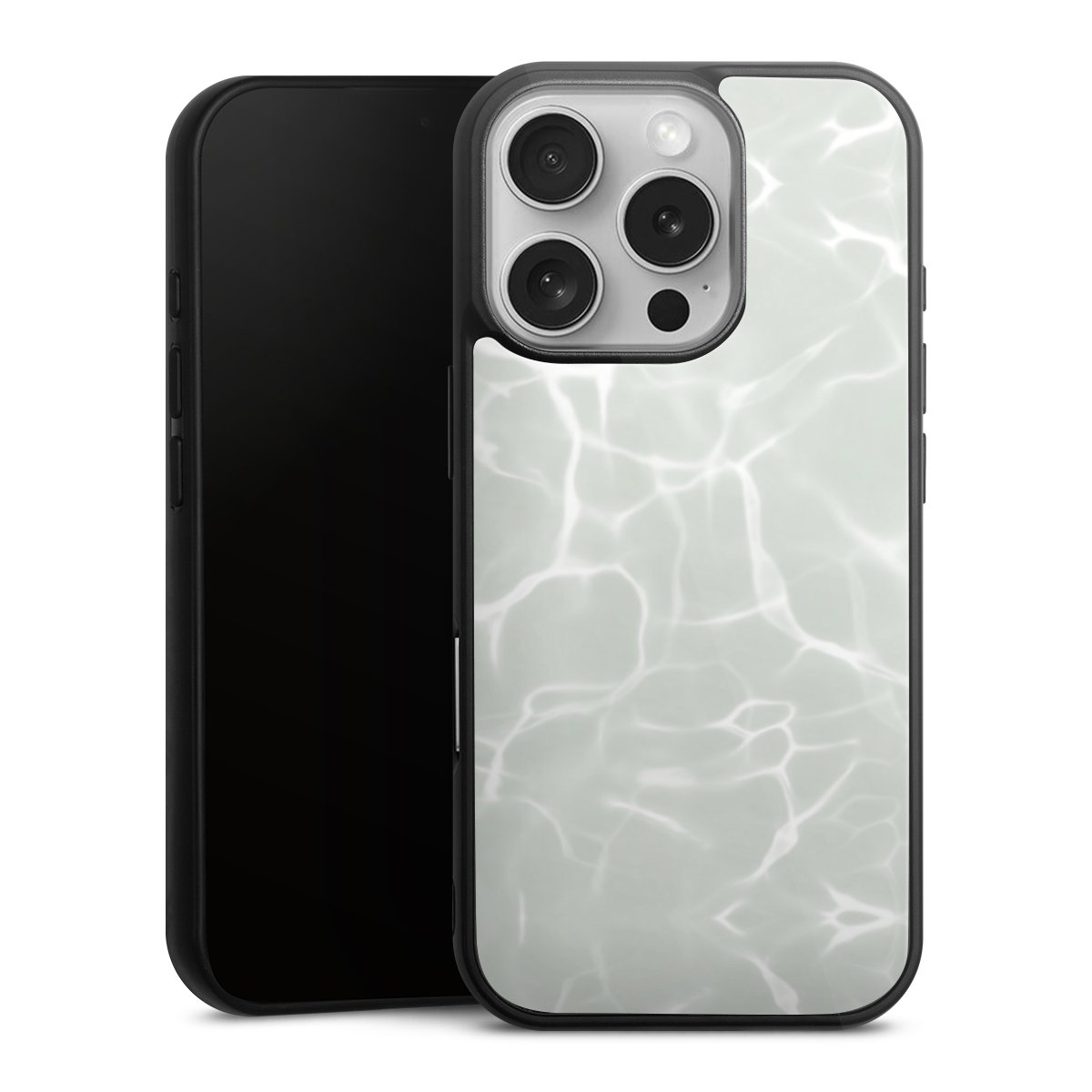 We print your design on the back of the glass inlay and then connect it firmly to the silicone case ,so that nothing sticks out and everything looks like it was cast from one piece. In addition, the sturdy glass element is protected from scratches by an additional coating and ensures a slight reflection on the shiny print image.