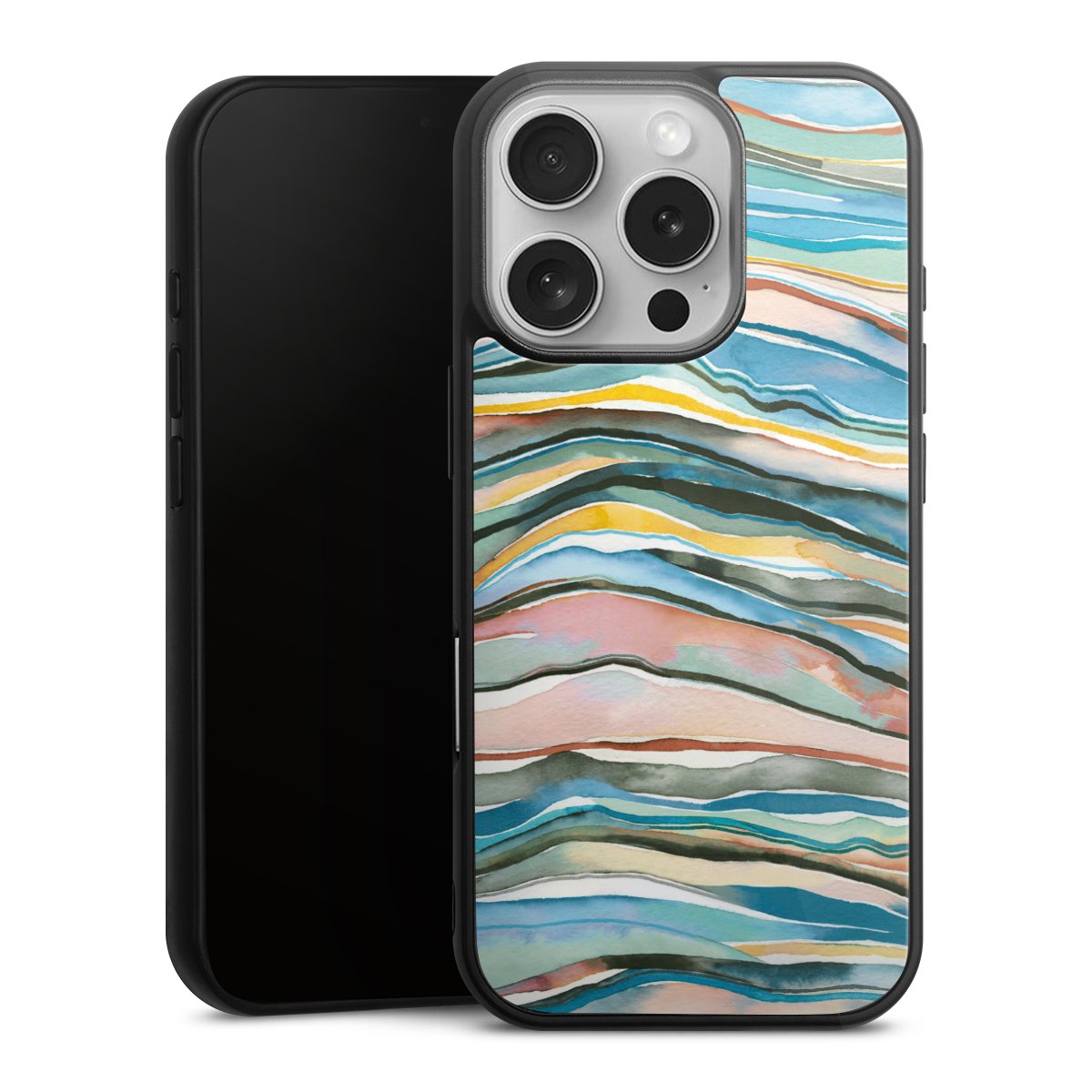 We print your design on the back of the glass inlay and then connect it firmly to the silicone case ,so that nothing sticks out and everything looks like it was cast from one piece. In addition, the sturdy glass element is protected from scratches by an additional coating and ensures a slight reflection on the shiny print image.