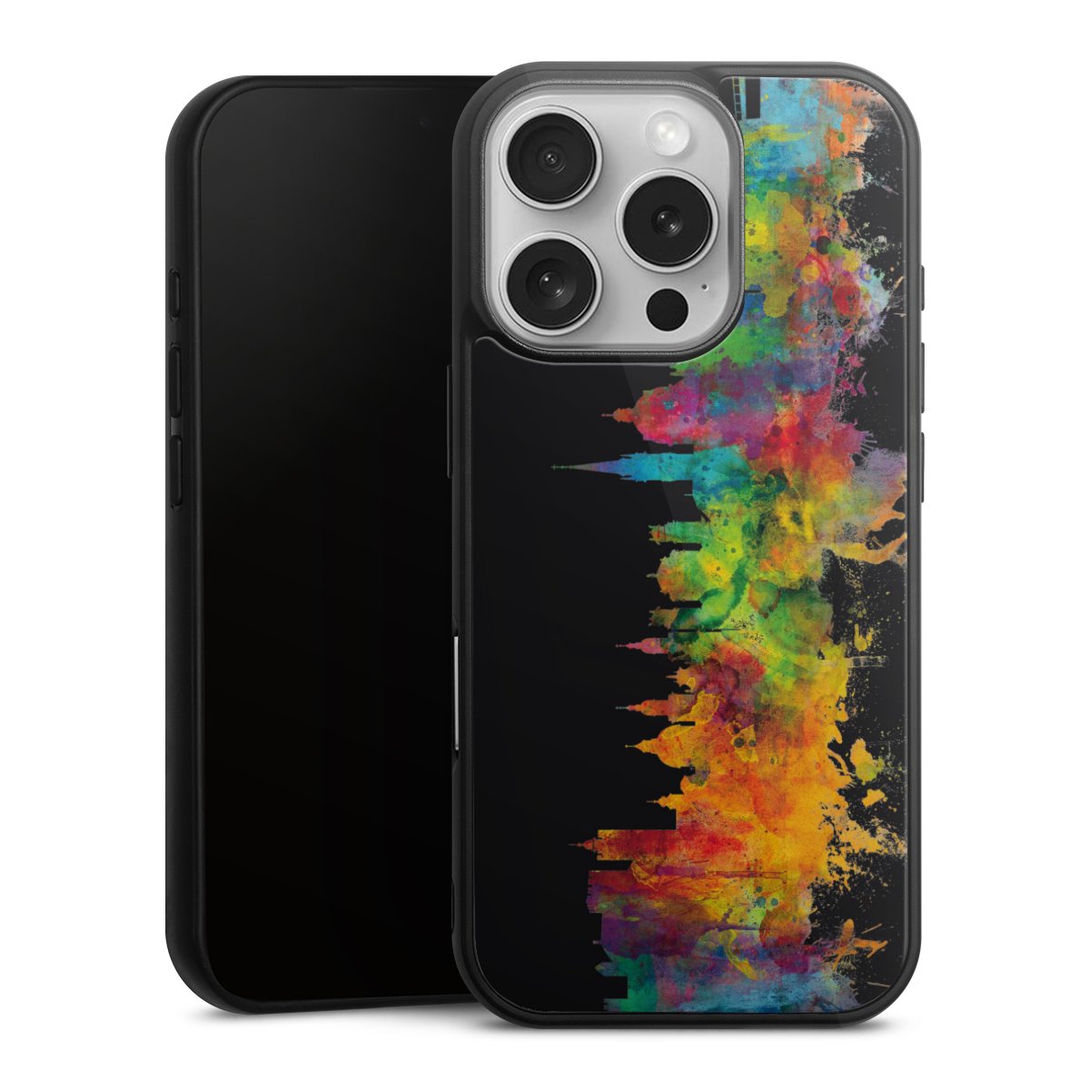 We print your design on the back of the glass inlay and then connect it firmly to the silicone case ,so that nothing sticks out and everything looks like it was cast from one piece. In addition, the sturdy glass element is protected from scratches by an additional coating and ensures a slight reflection on the shiny print image.