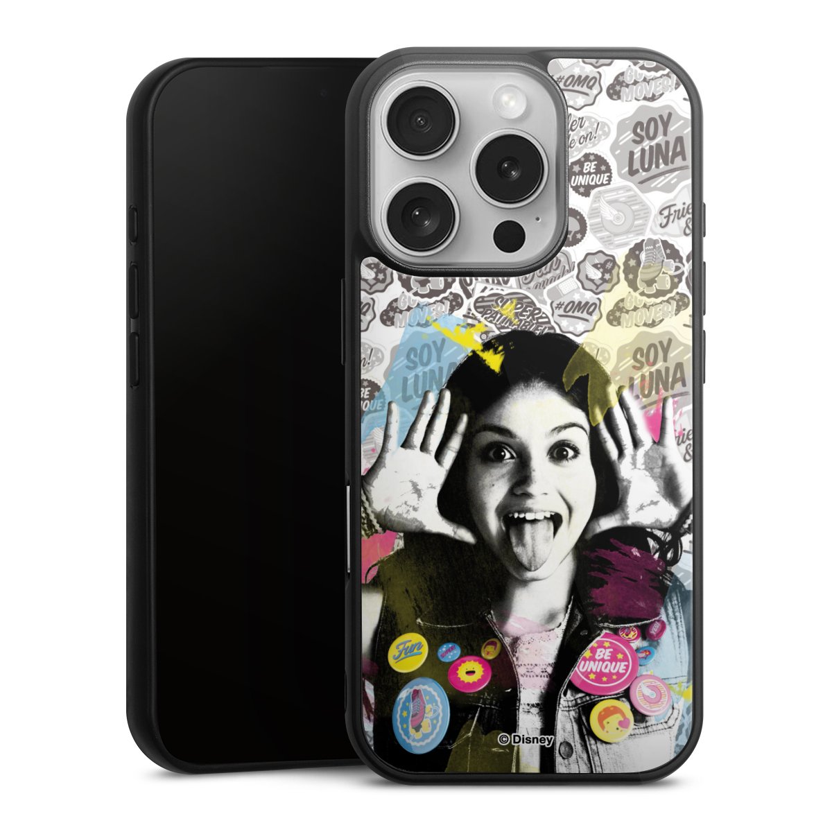 We print your design on the back of the glass inlay and then connect it firmly to the silicone case ,so that nothing sticks out and everything looks like it was cast from one piece. In addition, the sturdy glass element is protected from scratches by an additional coating and ensures a slight reflection on the shiny print image.