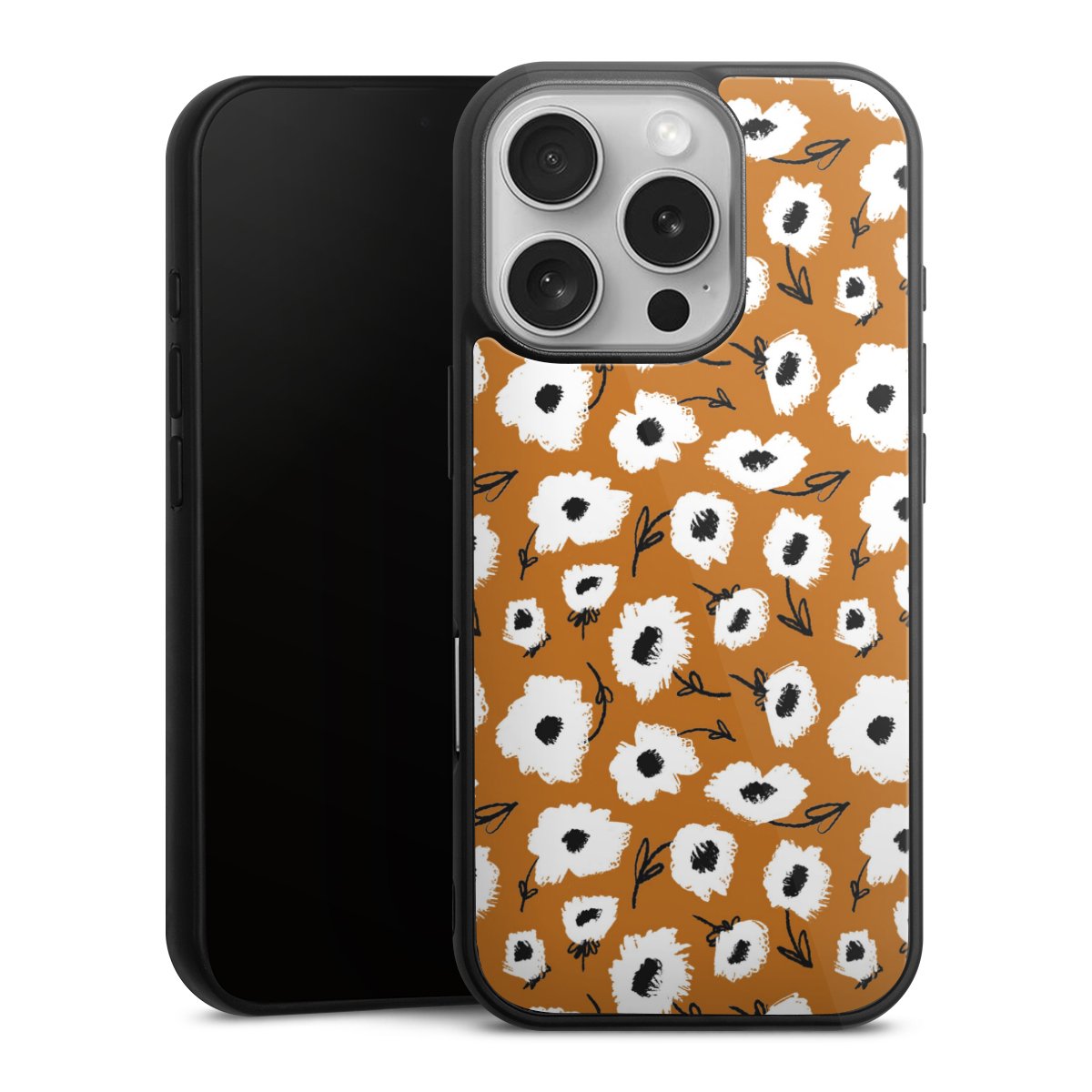 We print your design on the back of the glass inlay and then connect it firmly to the silicone case ,so that nothing sticks out and everything looks like it was cast from one piece. In addition, the sturdy glass element is protected from scratches by an additional coating and ensures a slight reflection on the shiny print image.