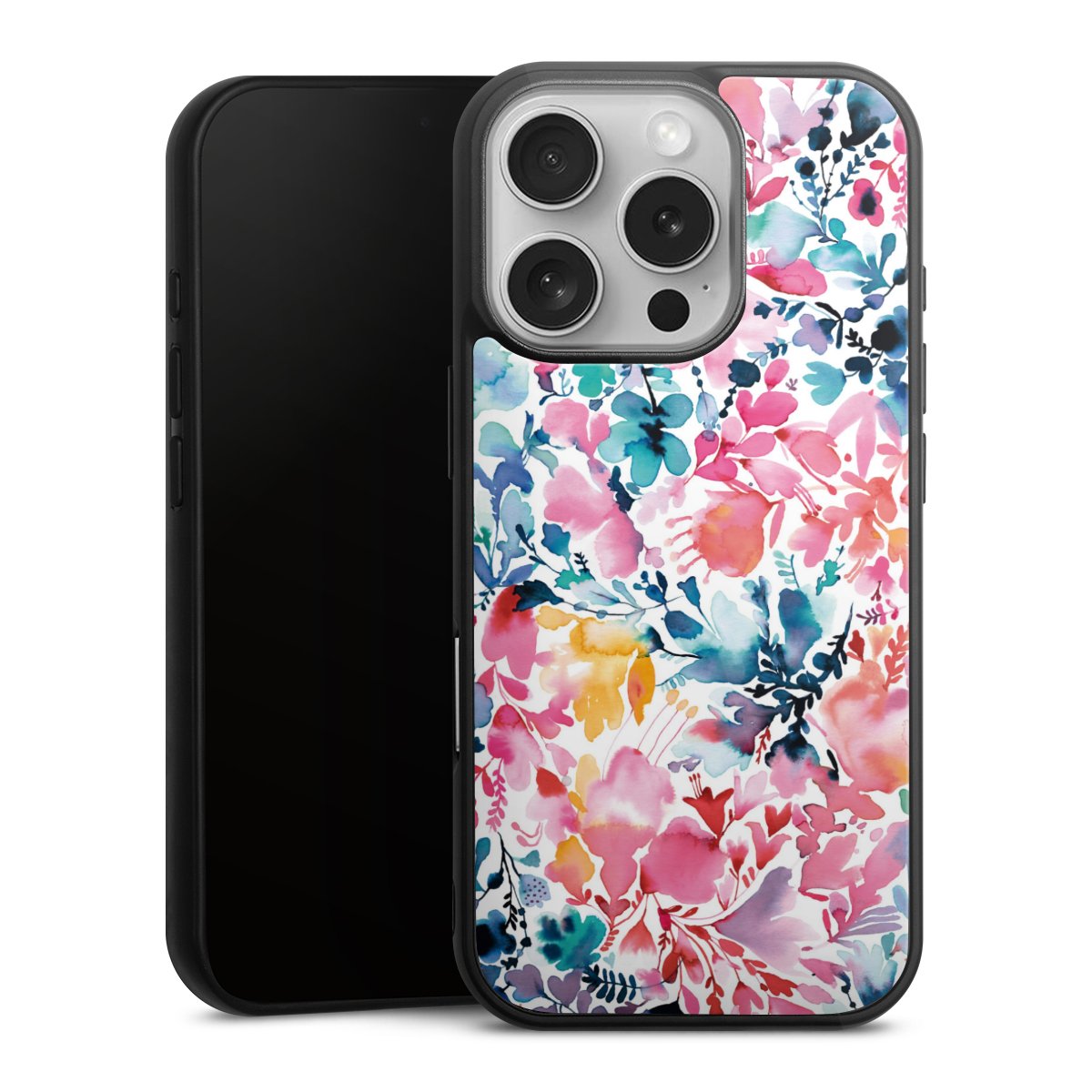We print your design on the back of the glass inlay and then connect it firmly to the silicone case ,so that nothing sticks out and everything looks like it was cast from one piece. In addition, the sturdy glass element is protected from scratches by an additional coating and ensures a slight reflection on the shiny print image.