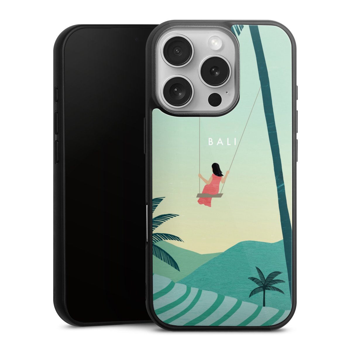 We print your design on the back of the glass inlay and then connect it firmly to the silicone case ,so that nothing sticks out and everything looks like it was cast from one piece. In addition, the sturdy glass element is protected from scratches by an additional coating and ensures a slight reflection on the shiny print image.