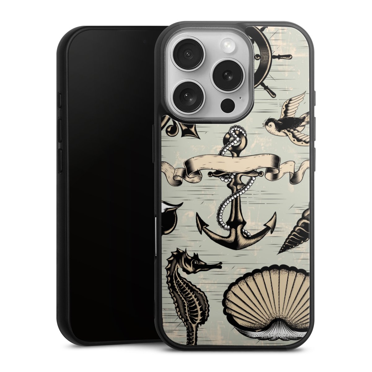 We print your design on the back of the glass inlay and then connect it firmly to the silicone case ,so that nothing sticks out and everything looks like it was cast from one piece. In addition, the sturdy glass element is protected from scratches by an additional coating and ensures a slight reflection on the shiny print image.