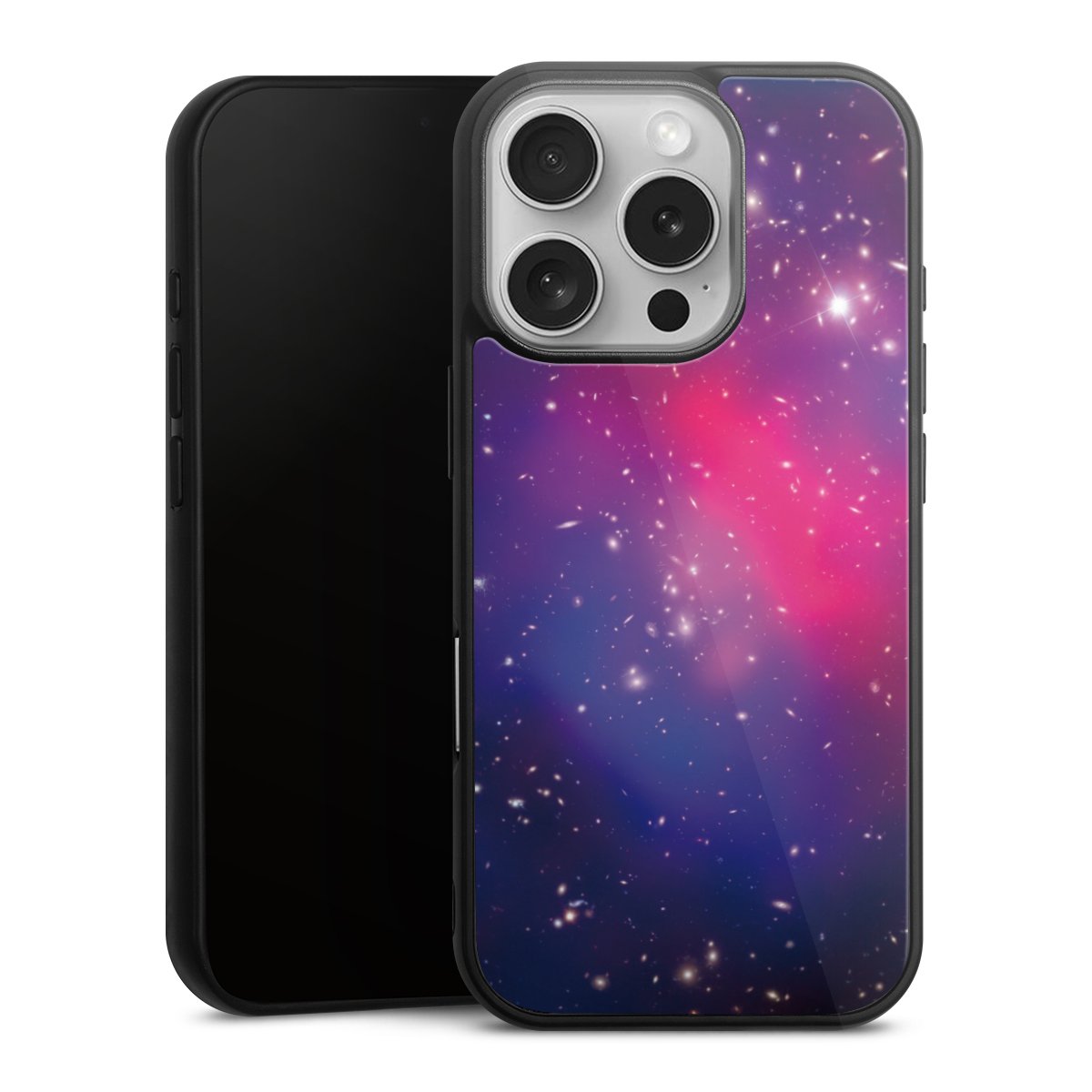 We print your design on the back of the glass inlay and then connect it firmly to the silicone case ,so that nothing sticks out and everything looks like it was cast from one piece. In addition, the sturdy glass element is protected from scratches by an additional coating and ensures a slight reflection on the shiny print image.