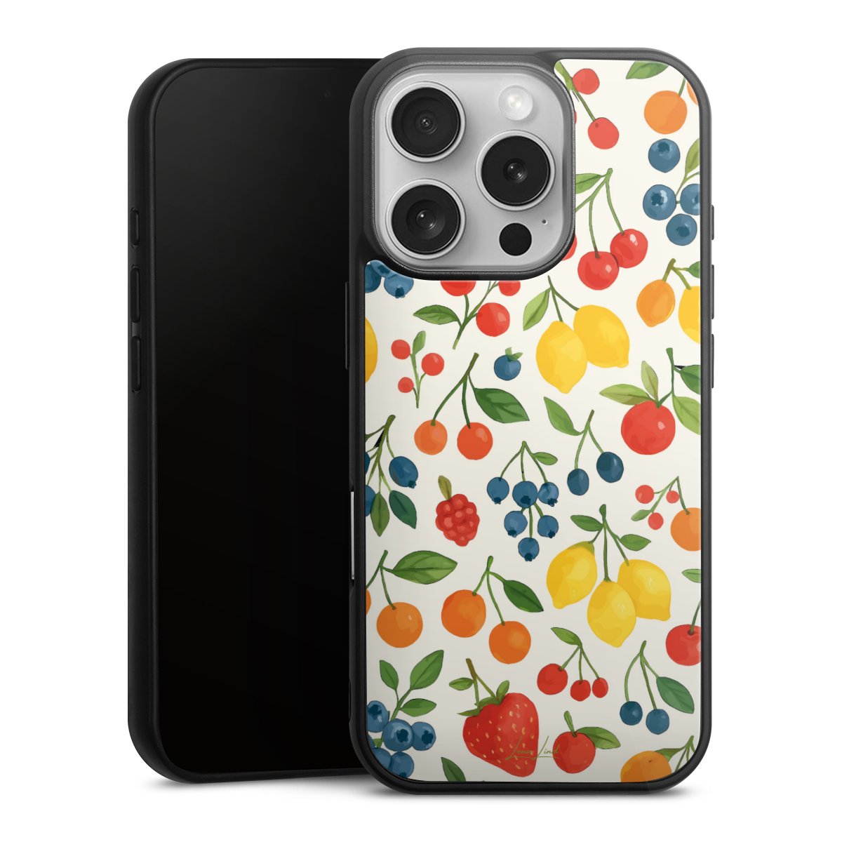 We print your design on the back of the glass inlay and then connect it firmly to the silicone case ,so that nothing sticks out and everything looks like it was cast from one piece. In addition, the sturdy glass element is protected from scratches by an additional coating and ensures a slight reflection on the shiny print image.