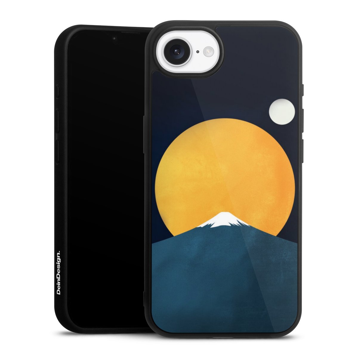 We print your design on the back of the glass inlay and then connect it firmly to the silicone case ,so that nothing sticks out and everything looks like it was cast from one piece. In addition, the sturdy glass element is protected from scratches by an additional coating and ensures a slight reflection on the shiny print image.