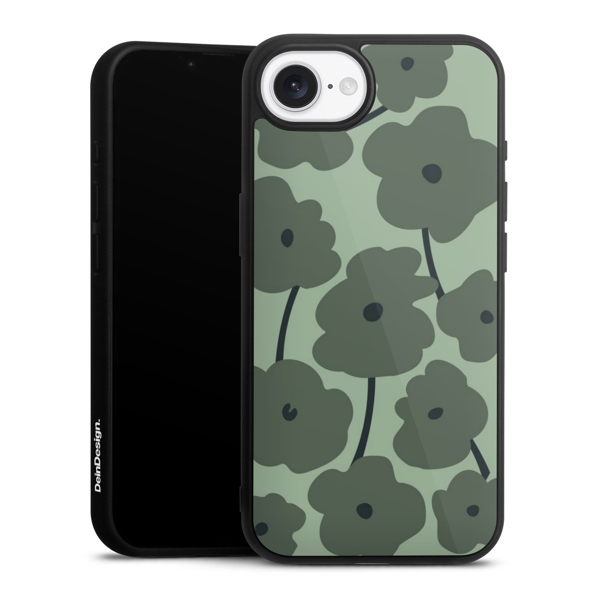 We print your design on the back of the glass inlay and then connect it firmly to the silicone case ,so that nothing sticks out and everything looks like it was cast from one piece. In addition, the sturdy glass element is protected from scratches by an additional coating and ensures a slight reflection on the shiny print image.