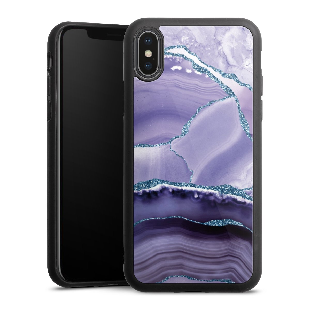 We print your design on the back of the glass inlay and then connect it firmly to the silicone case ,so that nothing sticks out and everything looks like it was cast from one piece. In addition, the sturdy glass element is protected from scratches by an additional coating and ensures a slight reflection on the shiny print image.