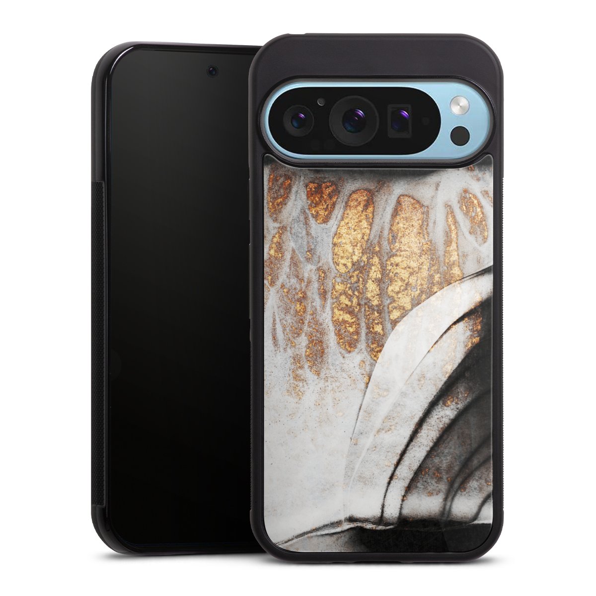 The contrast between the matte black TPU on the sides and the glossy glass surface not only makes the Gallery Case a fest for the eyes, but also a real treat for the hands: The glass gives the phone a pleasantly smooth back and the soft silicone edge provides the necessary grip.